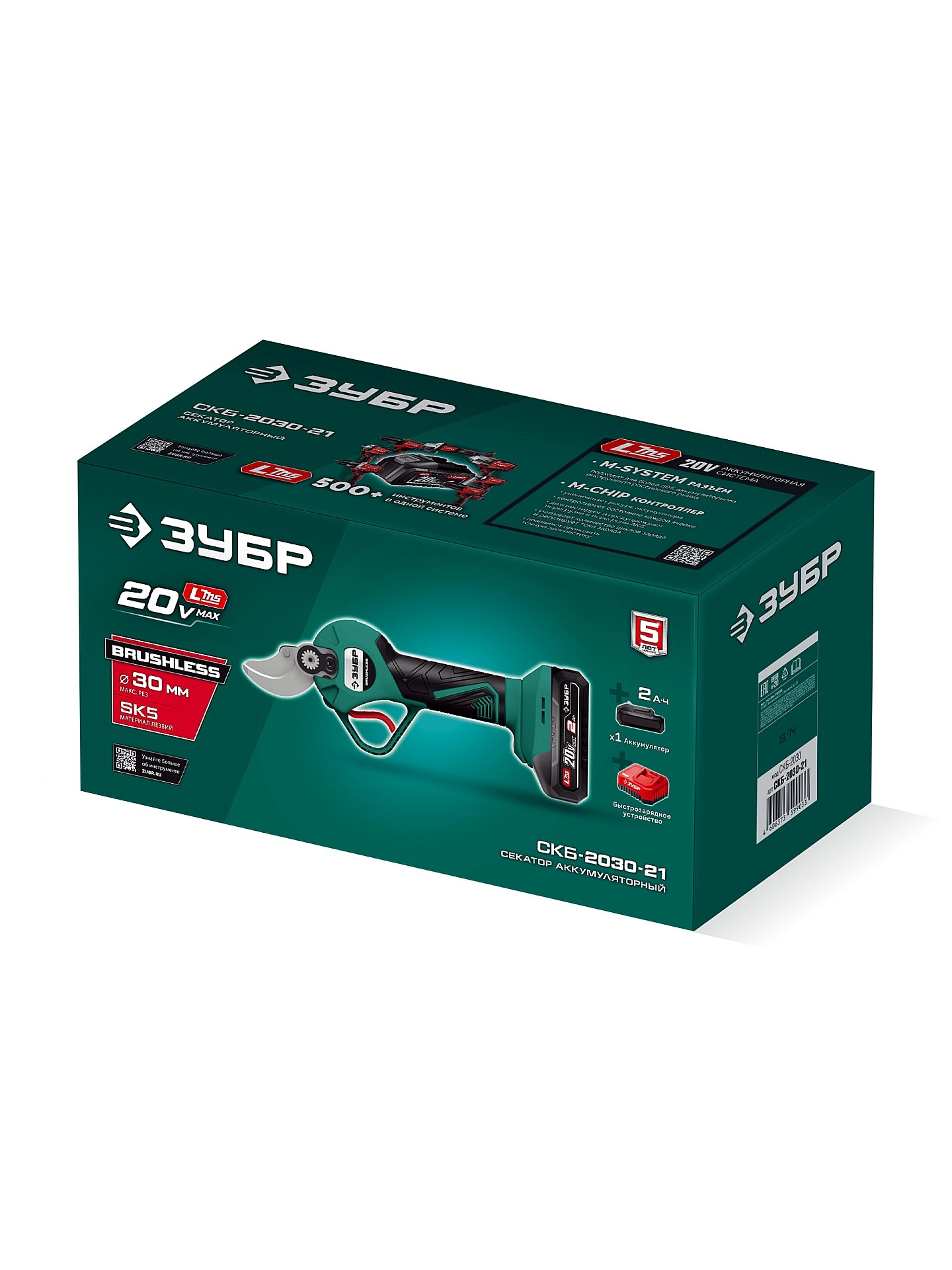 Секатор аккумуляторный ЗУБР 20 В, 30 мм макс. рез, 1 АКБ LMS (2 Ач)