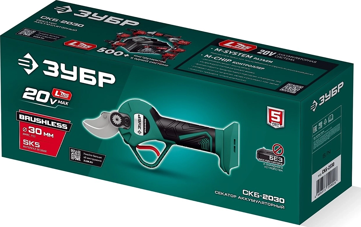 Секатор аккумуляторный ЗУБР 20 В, 30 мм макс. рез, без АКБ (LMS)