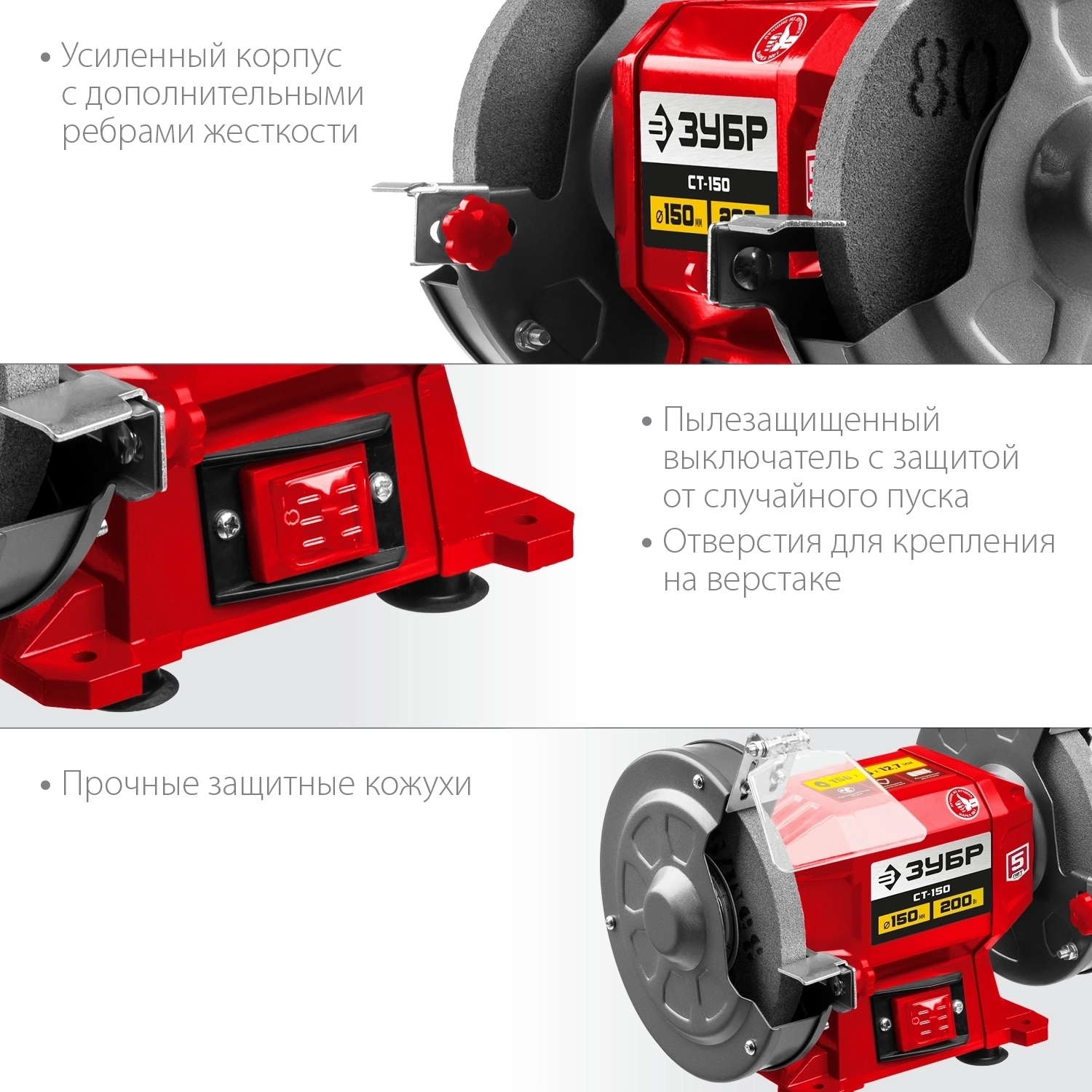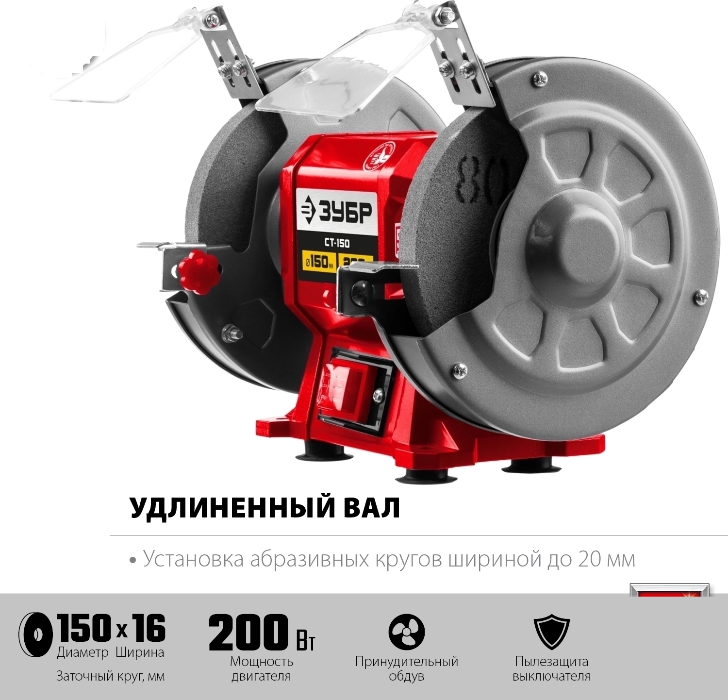 Станок заточной ЗУБР СТ-150 – незаменимый инструмент для гаража, мастерской и используемый для заточки и сухой шлифовки металлических заготовок и режущего инструмента. Простота конструкции, высокая надежность, компактный размер, два камня с разной зернистостью – все что нужно для настоящего мастера, ценяще-го качество и рассчитывающего на долгий срок службы