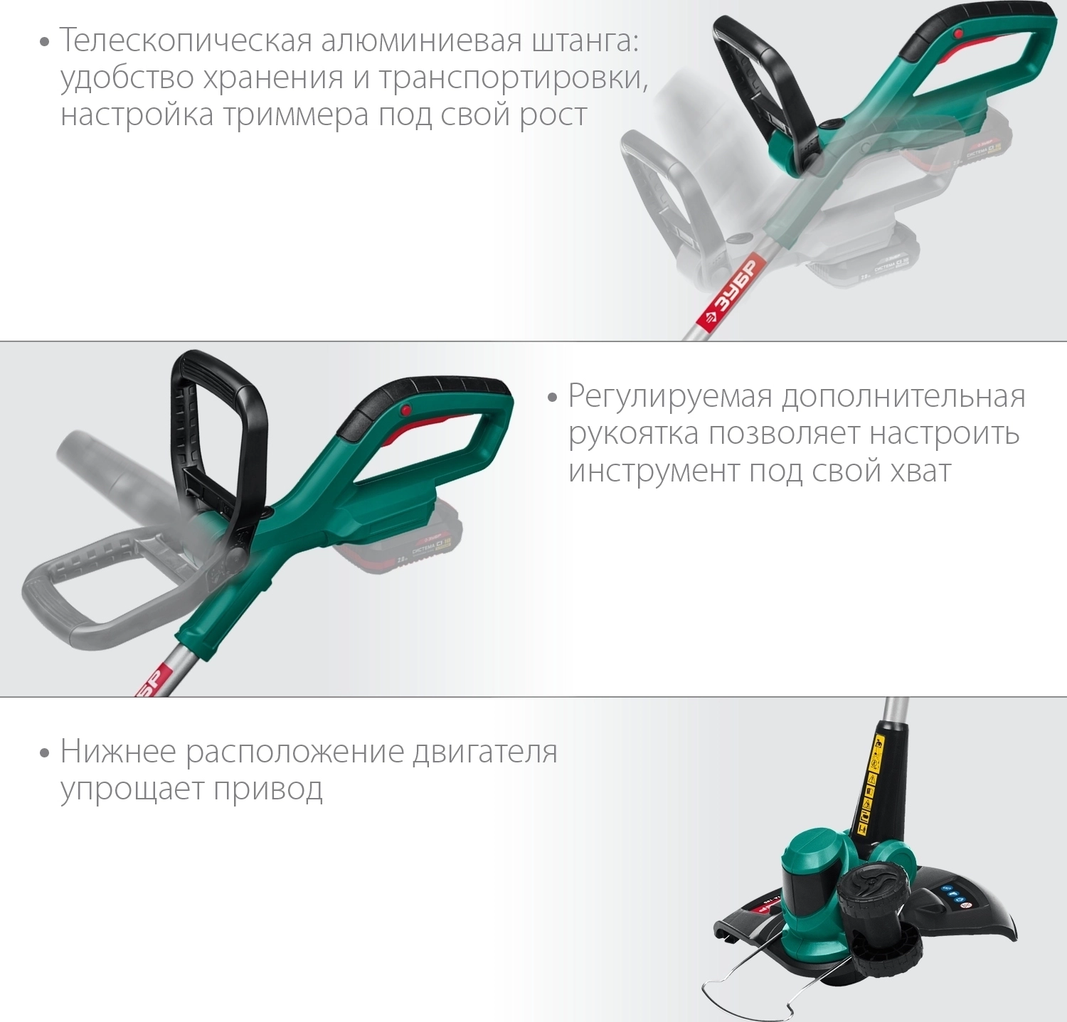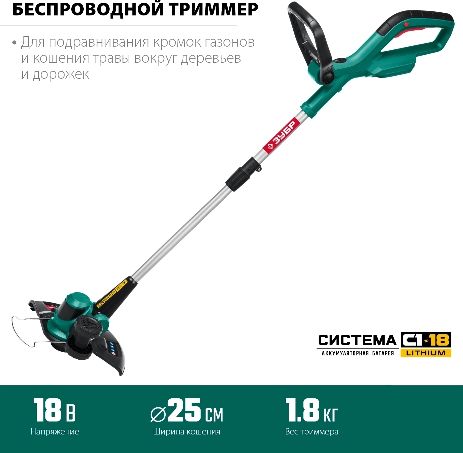 Аккумуляторный триммер ЗУБР С1-18, 18 В, 25 см, без АКБ