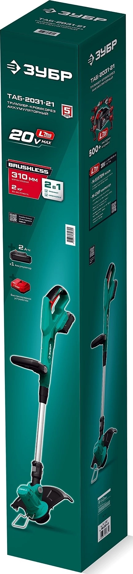 Триммер аккумуляторный бесщеточный ЗУБР 20 В, 310 мм, 1 АКБ LMS (2 Ач)