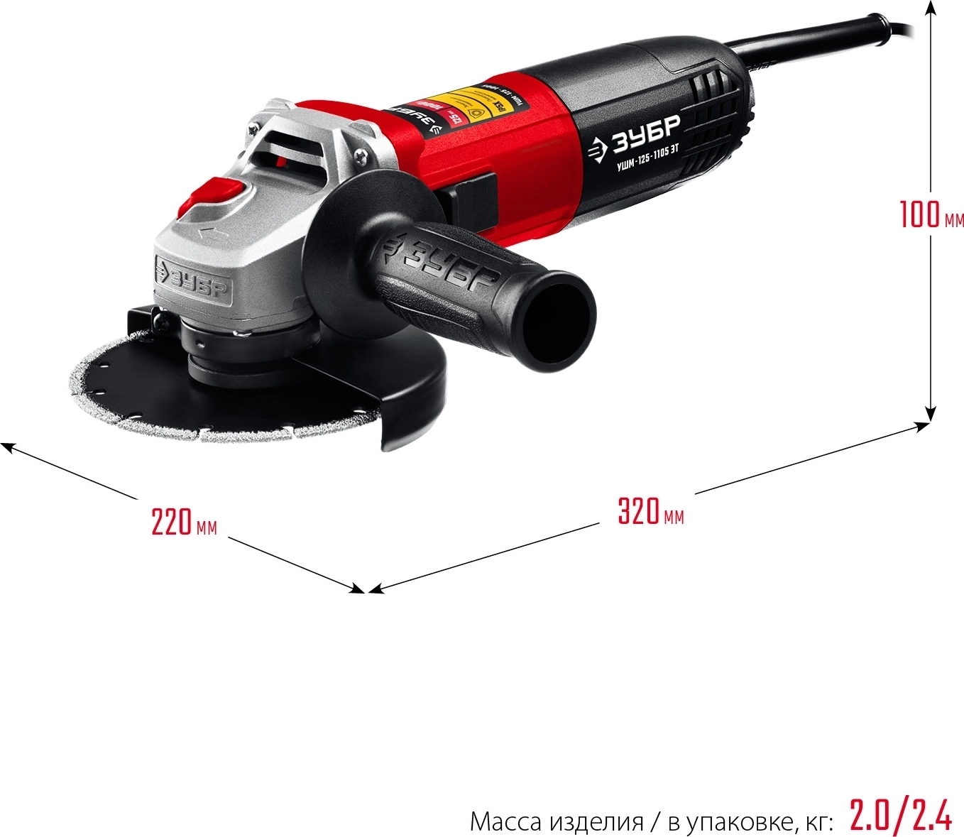 Регулировка оборотов ЗУБР 1100 Вт, d125 мм, УШМ