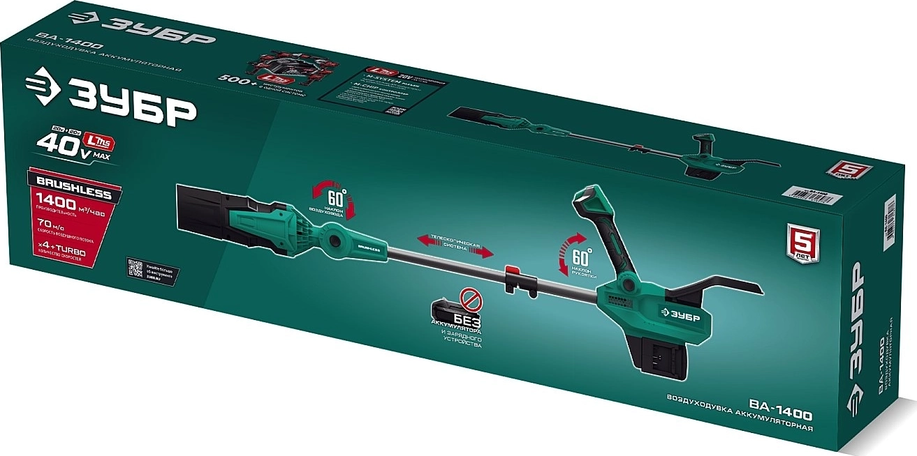 Воздуходувка аккумуляторная ЗУБР 40 В (2x20В), 1400 м3/ч, без АКБ (LMS)