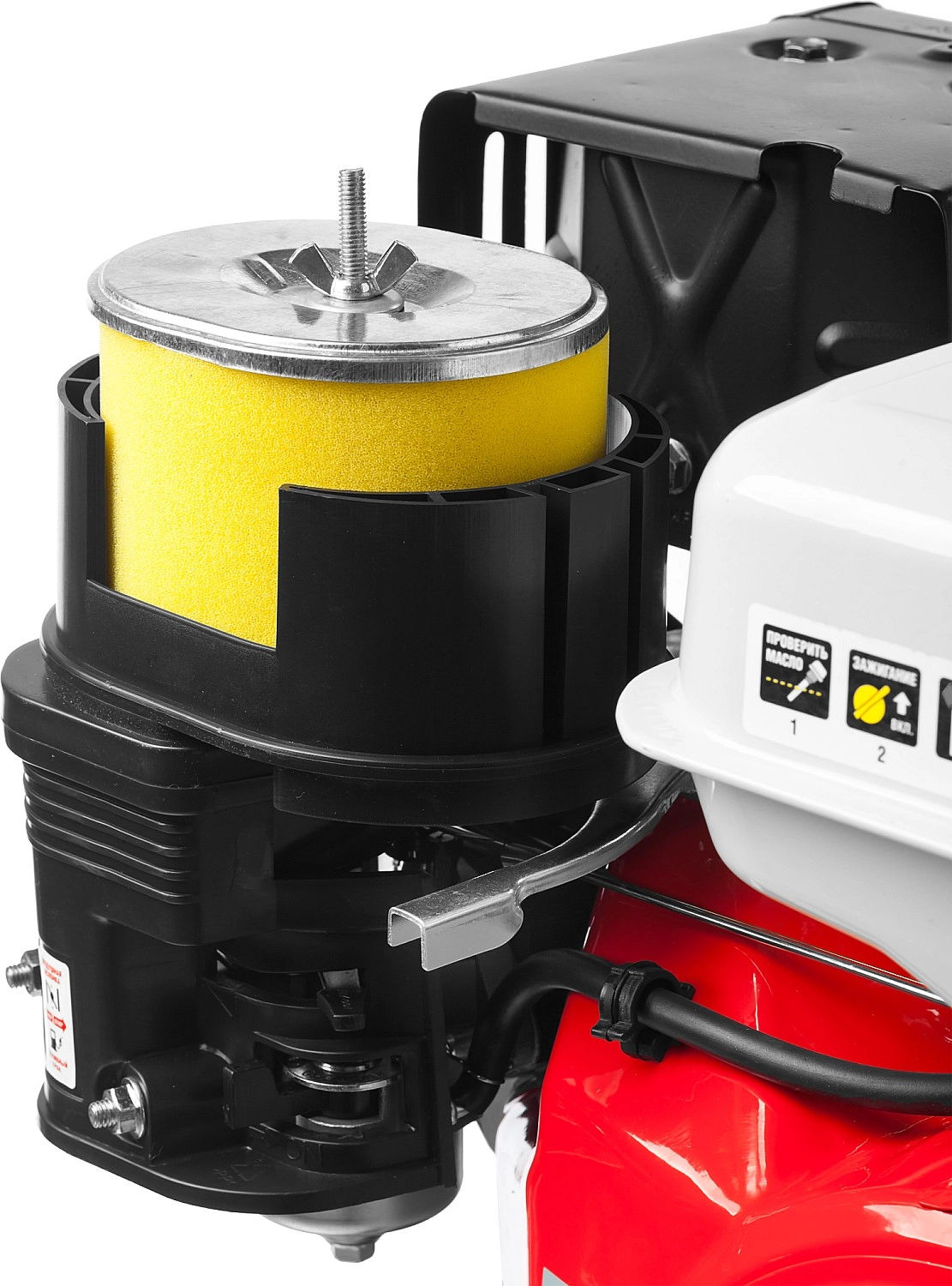 - Четырехтактный двигатель с раздельными системами питания и смазки избавляет от необходимости приготовления рабочей смеси