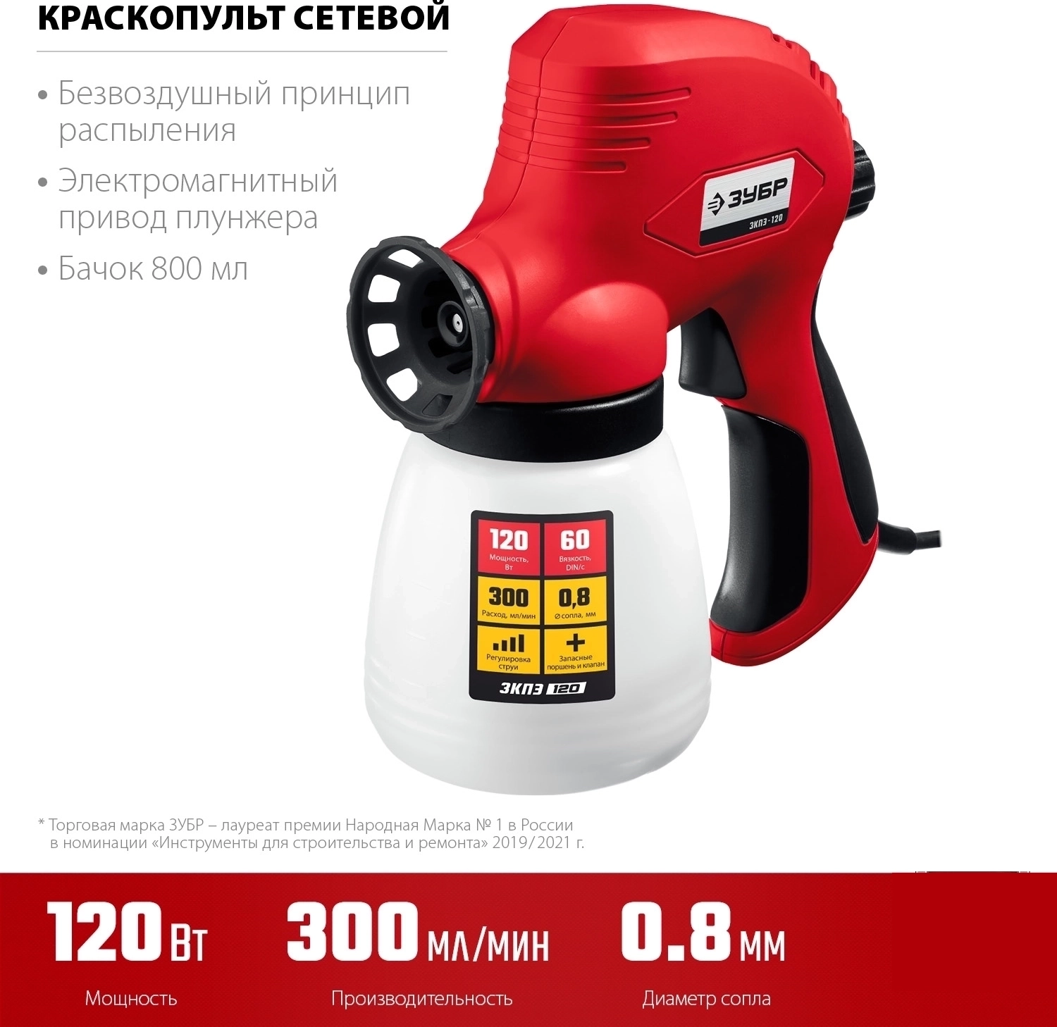Безвоздушный ЗУБР 120 Вт, краскопульт электрический