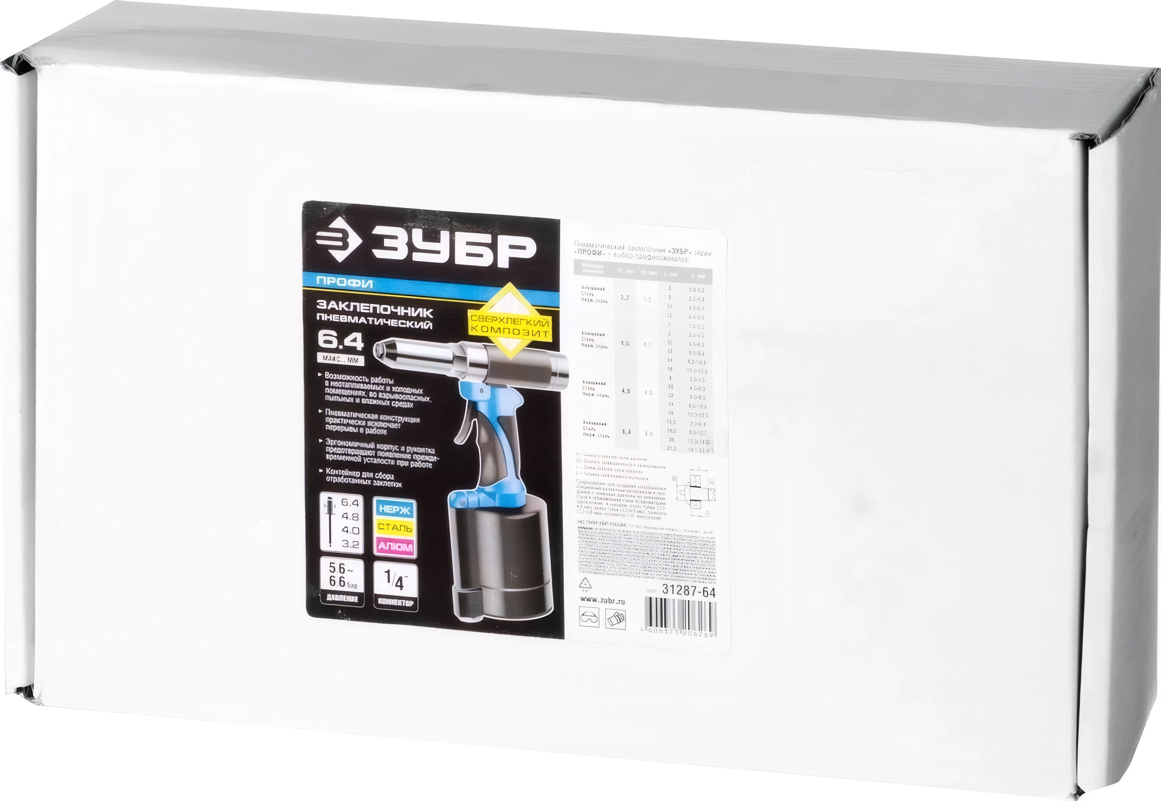 Заклепочник ЗУБР пневматический 4мм, композитный, для заклепок из нерж стали