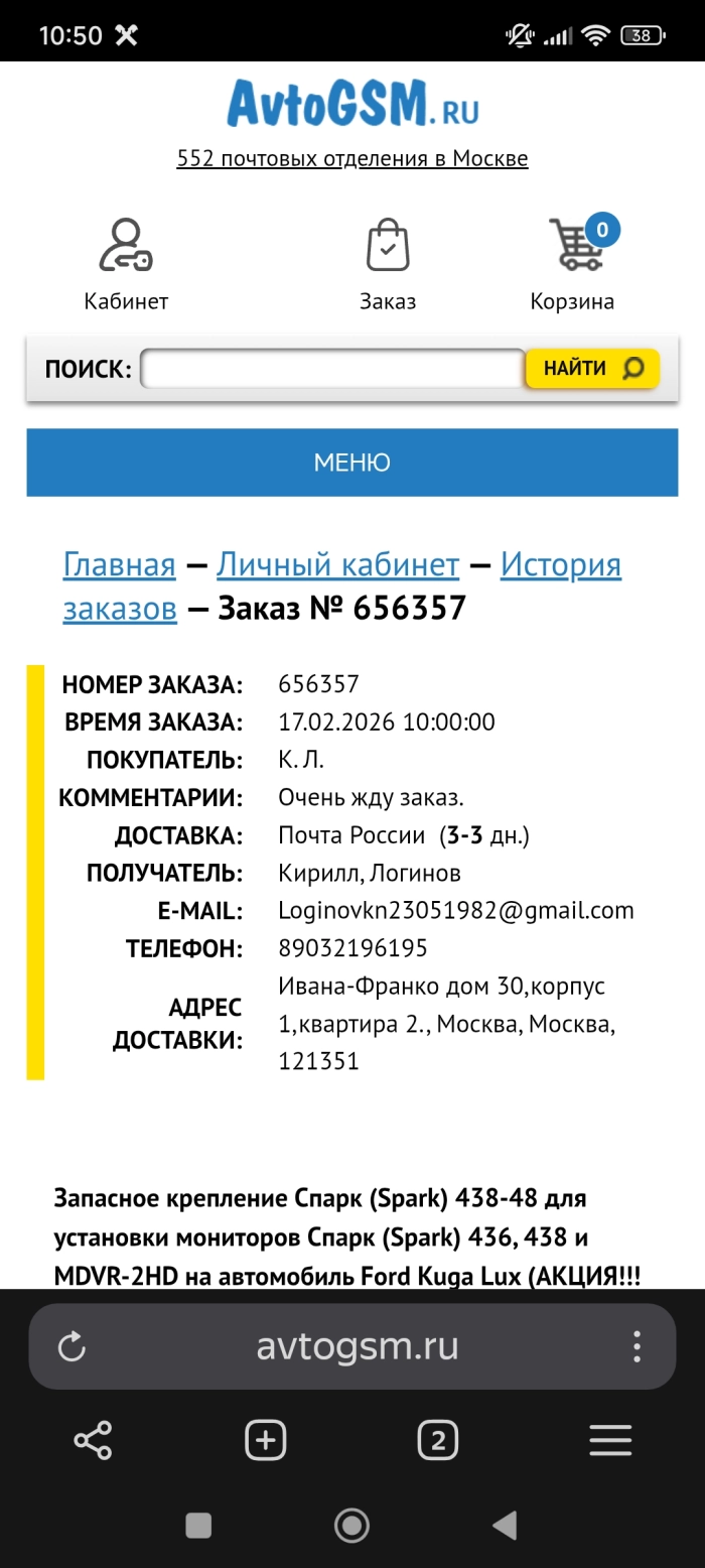 Добрый день. Заказ в работе. Отгрузка будет осуществлена в пятницу 20.02.2026. После отгрузки заказ на вашу электронную почту придет трек-номер для отслеживания заказа.