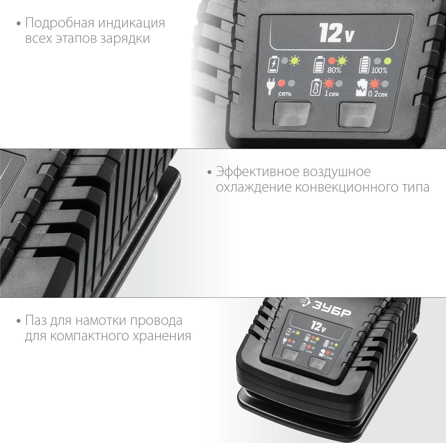 Полностью цифровое интеллектуальное устройство для бережной и максимальной (в отличие от устройств другого типа) зарядки батареи - для полной отдачи Вашего инструмента ЗУБР