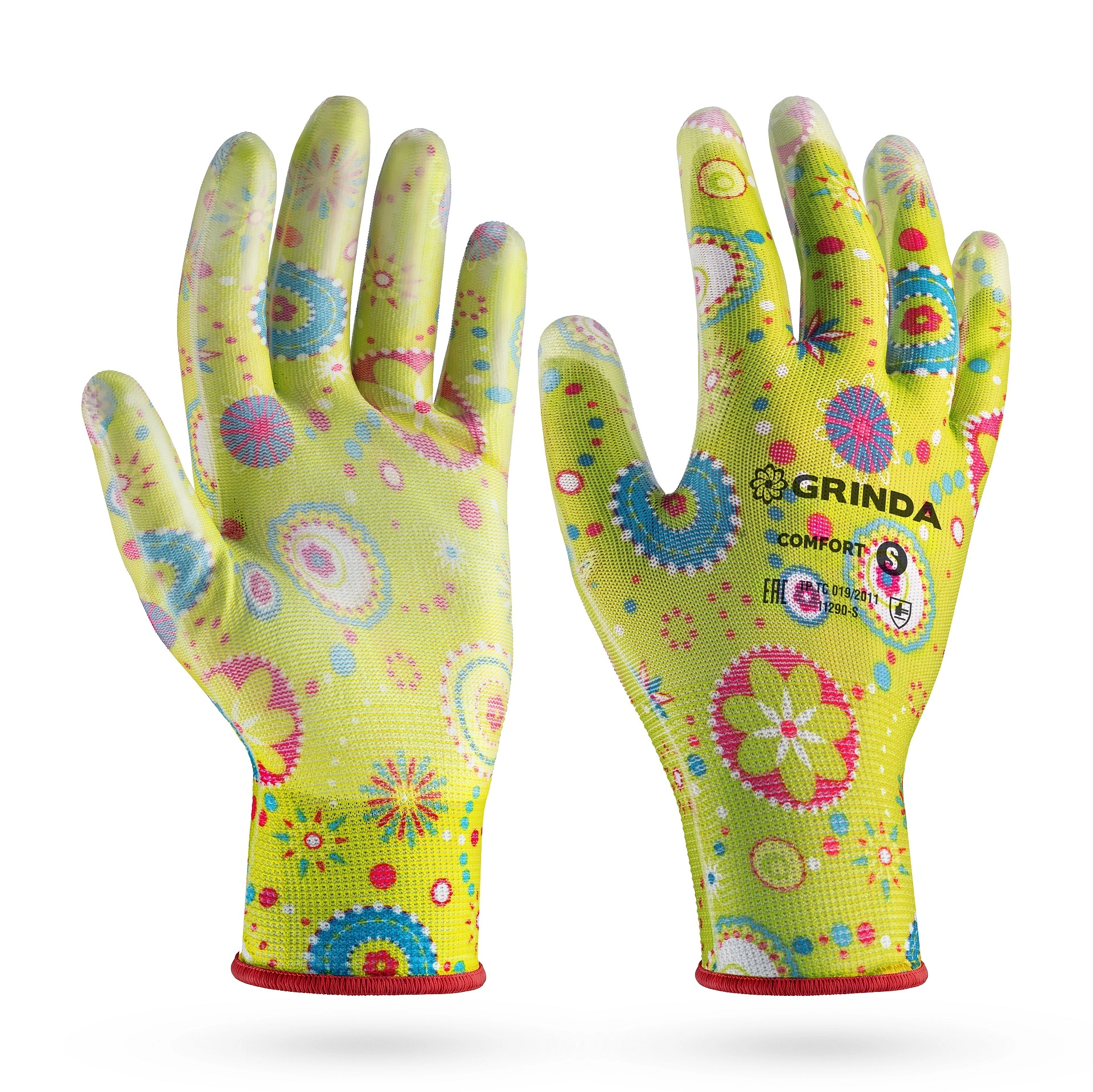 Садовые перчатки COMFORT, S (7), 13 класс, с полиуретановым покрытием, зелёные арт. 120227