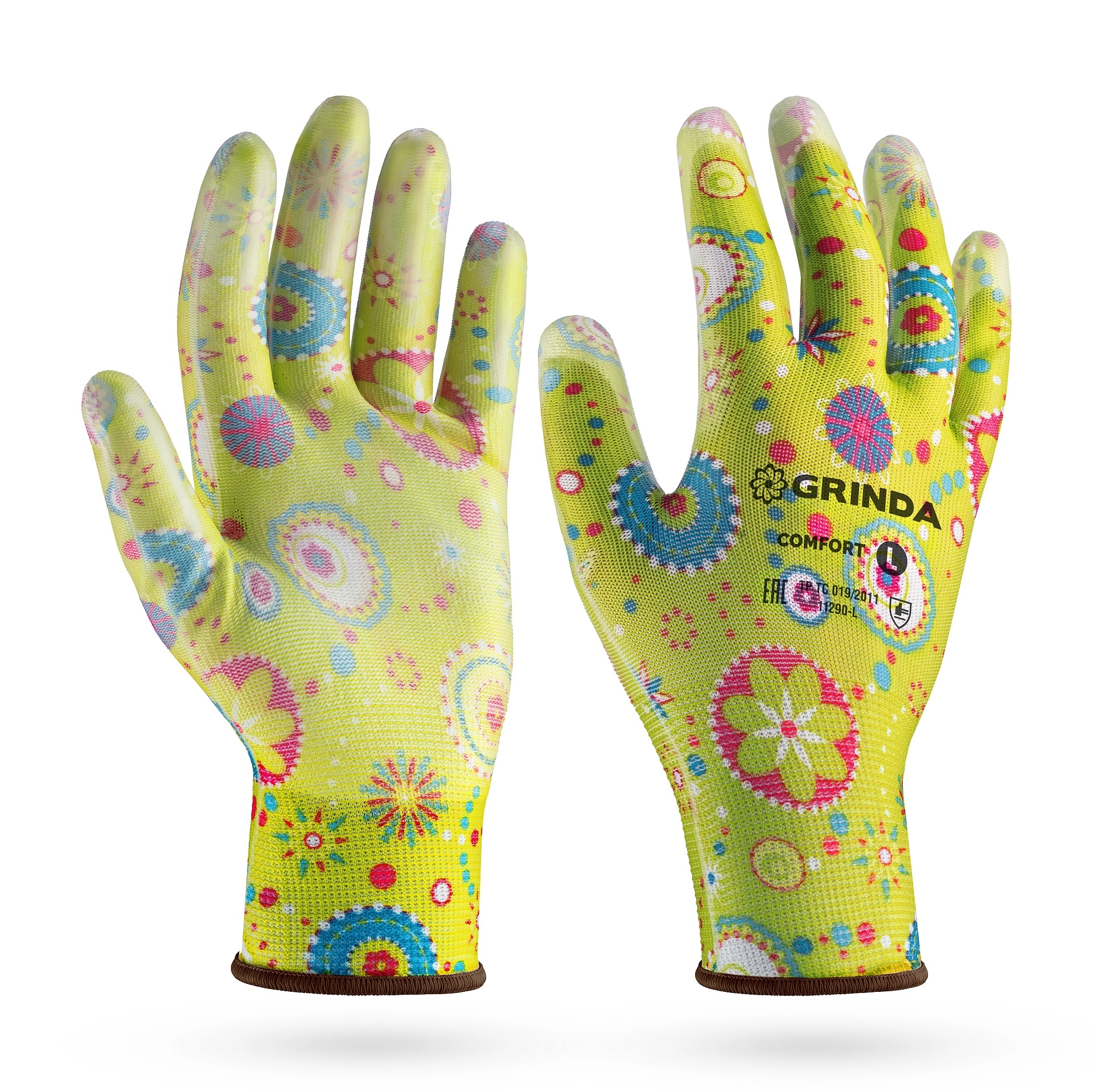 Садовые перчатки COMFORT, L (9), 13 класс, с полиуретановым покрытием, зелёные арт. 120225