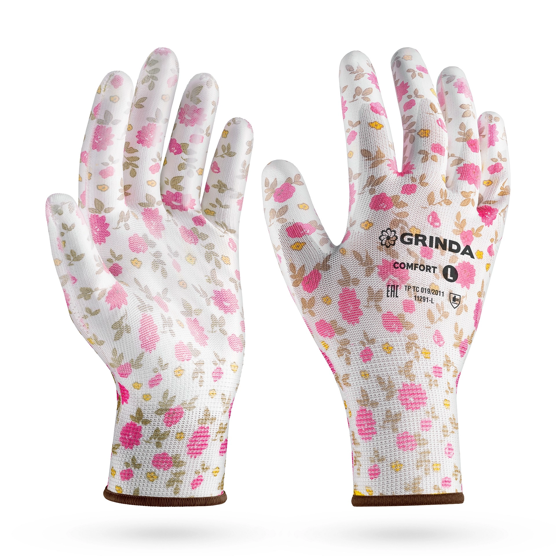 Садовые перчатки COMFORT, L (9), 13 класс, с полиуретановым покрытием, розовые арт. 120228