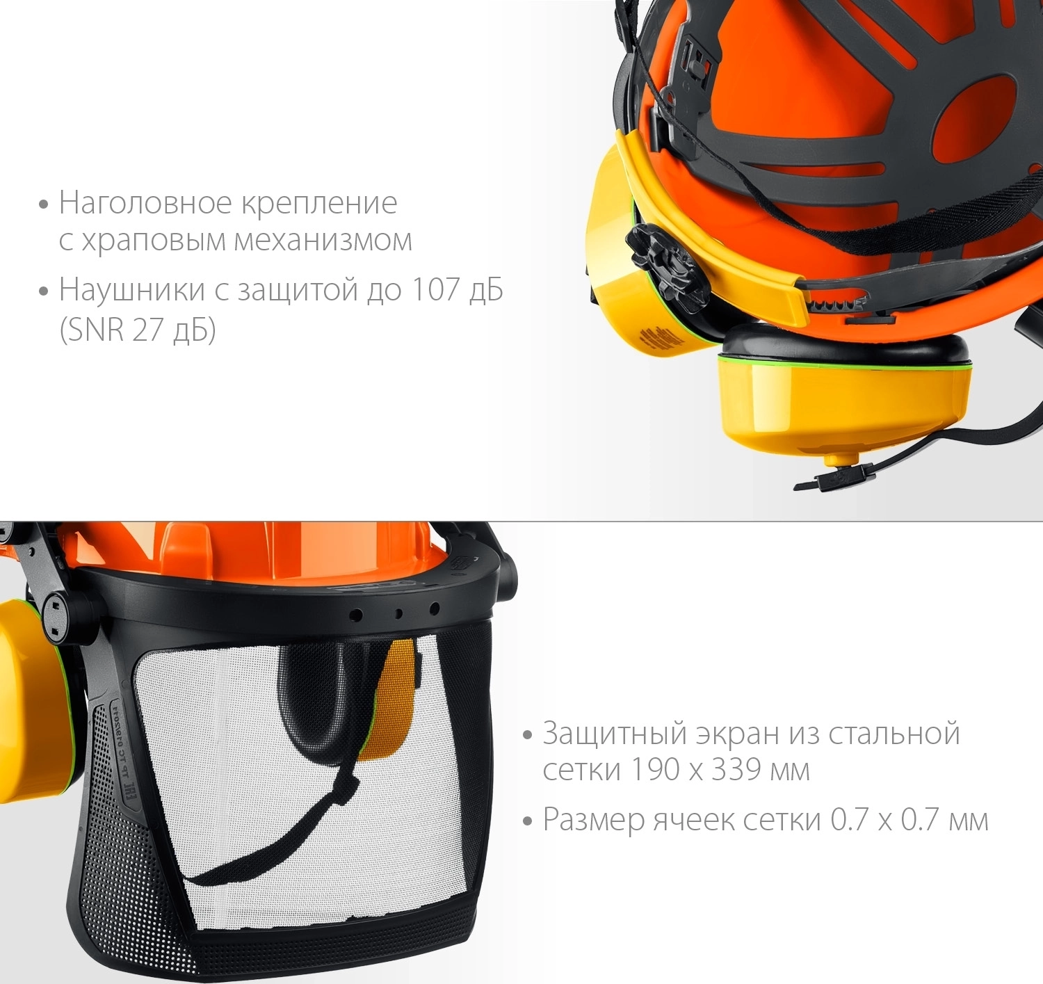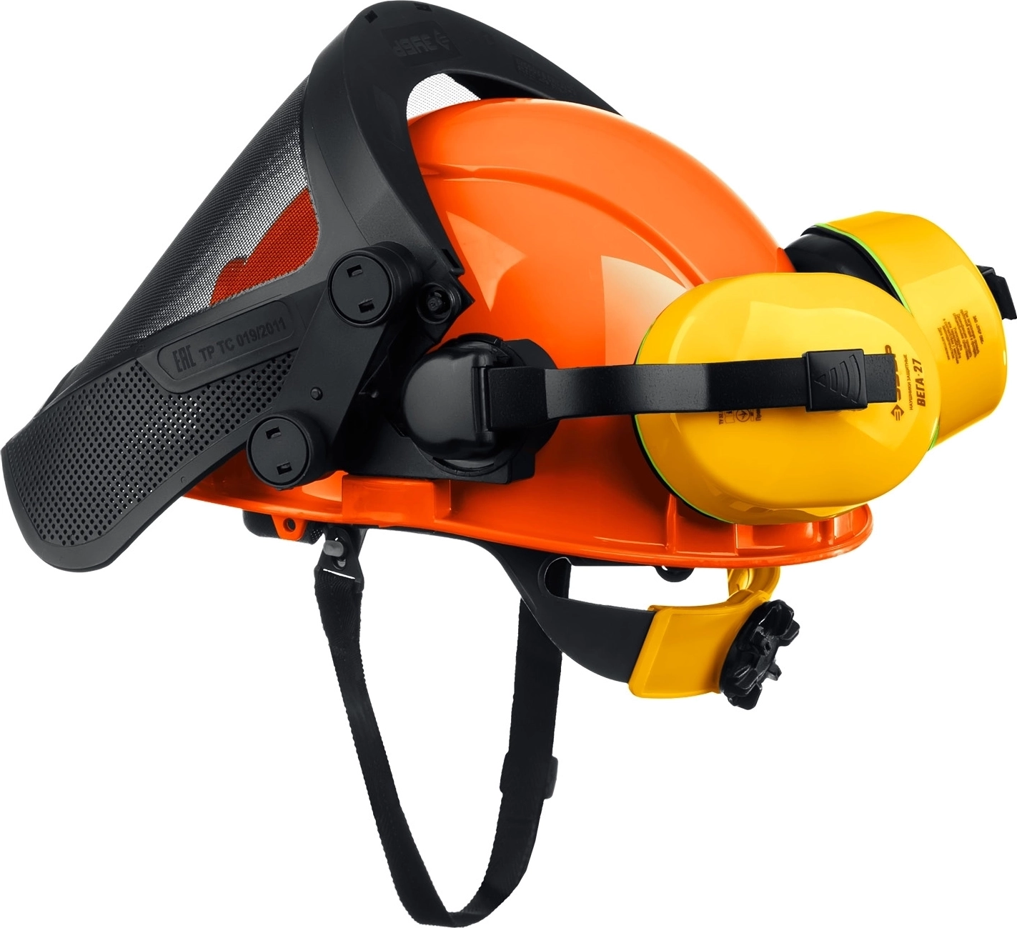 - Каска в комплекте с наушниками и защитным экраном