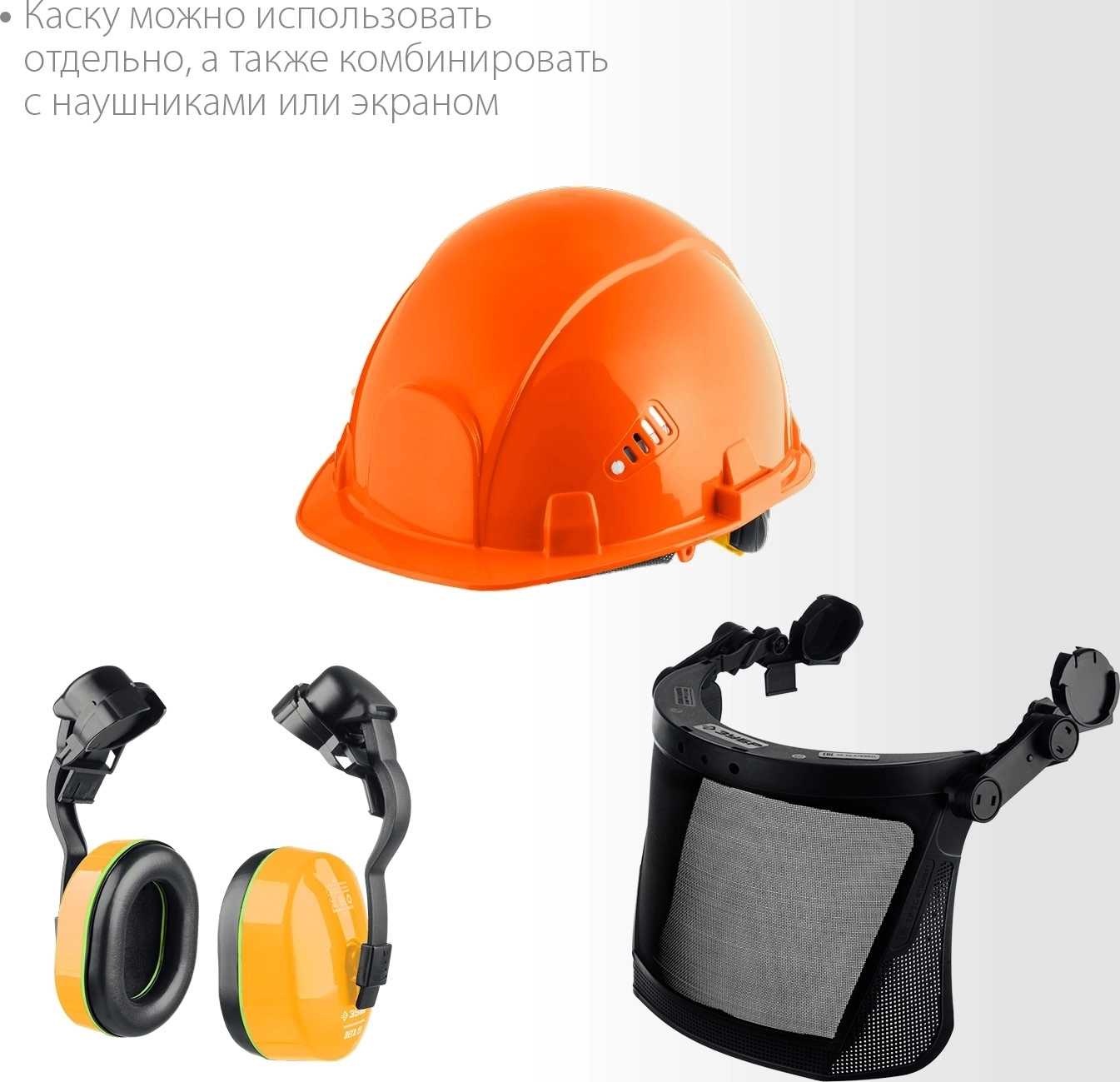 Защитная каска ЗУБР ТРИАДА в комплекте с наушниками и защитным сетчатым экраном
