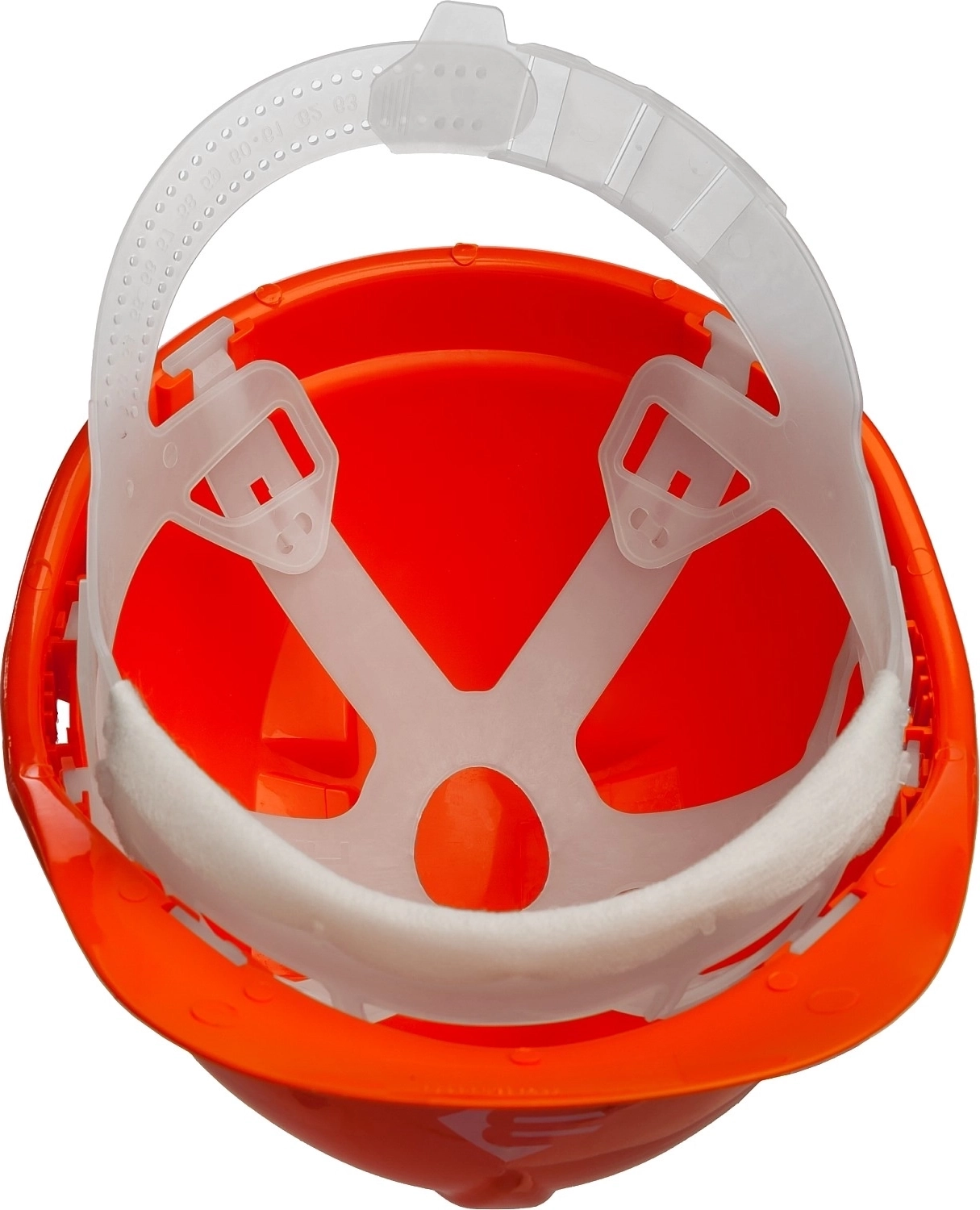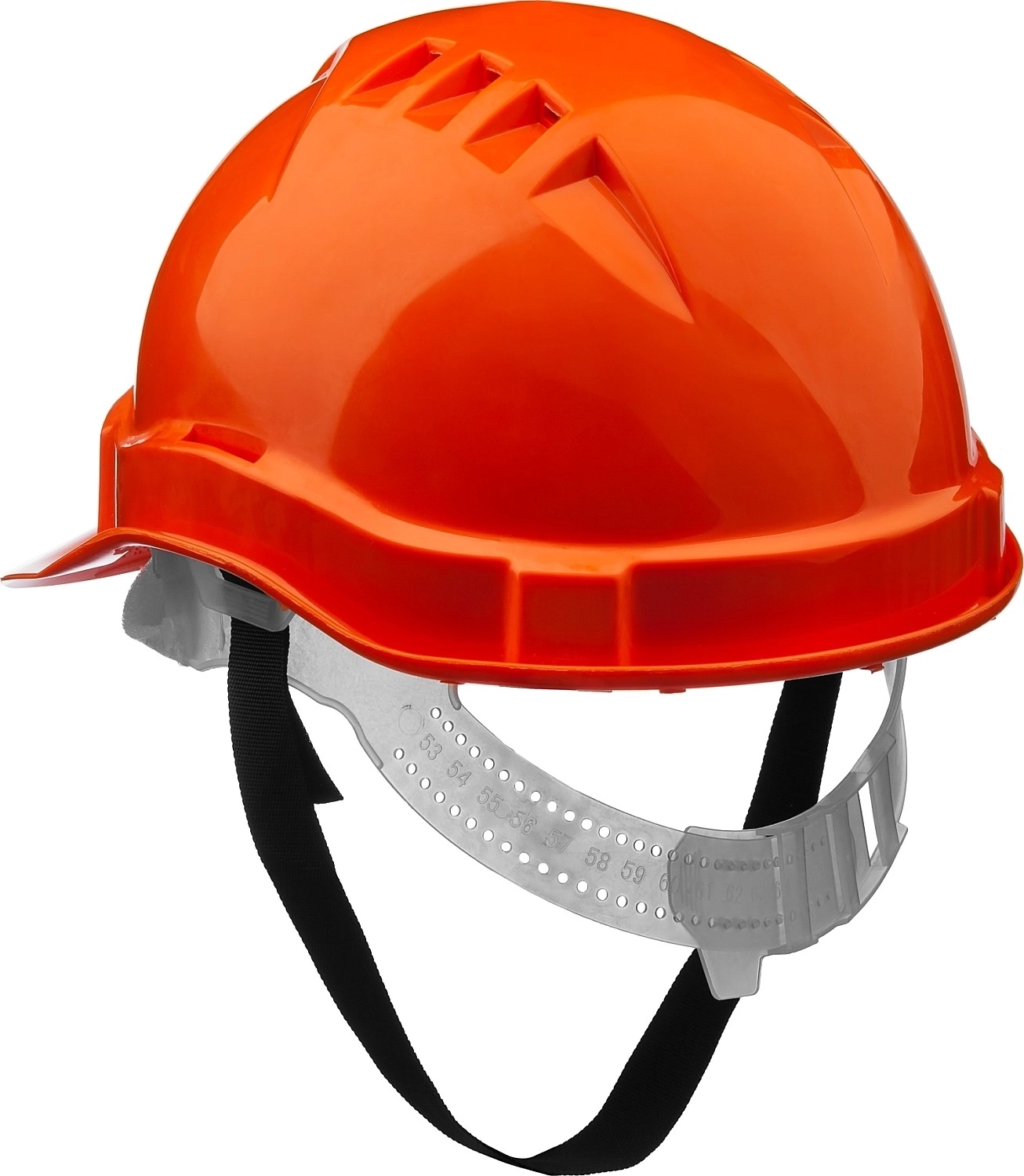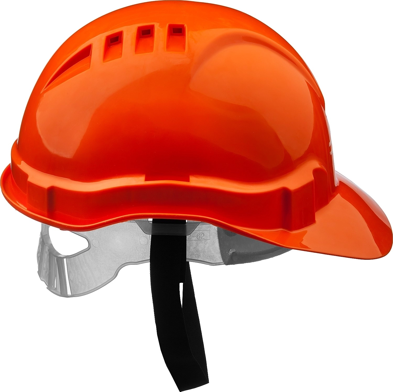 Защитная каска ЗУБР оранжевая, реечный механизм, универсальное крепление для наушников и щитков