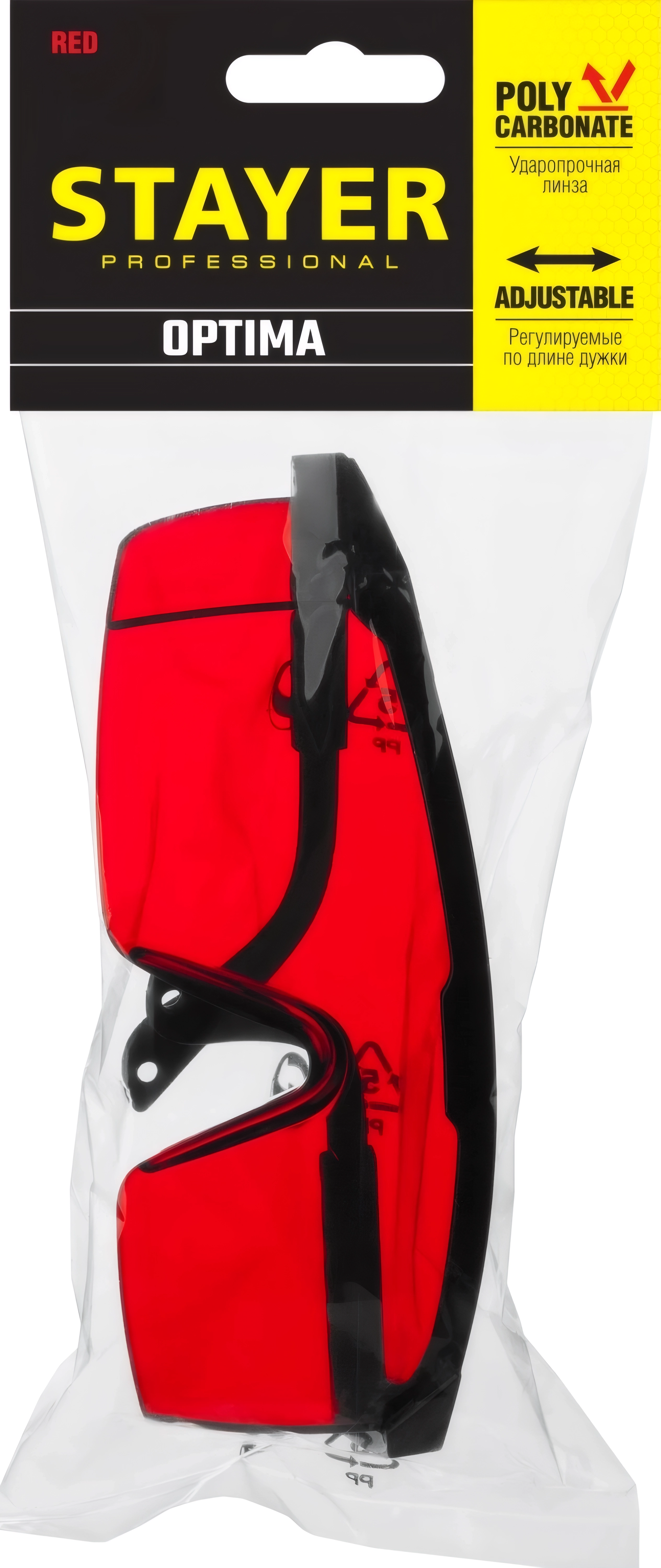 Защитные очки STAYER OPTIMA открытого типа, красные, моностекло с дополнительной боковой защитой