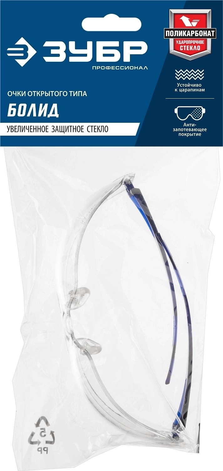 Защитные очки ЗУБР БОЛИД открытого типа прозрачные сферические стёкла устойчивые к запотеванию