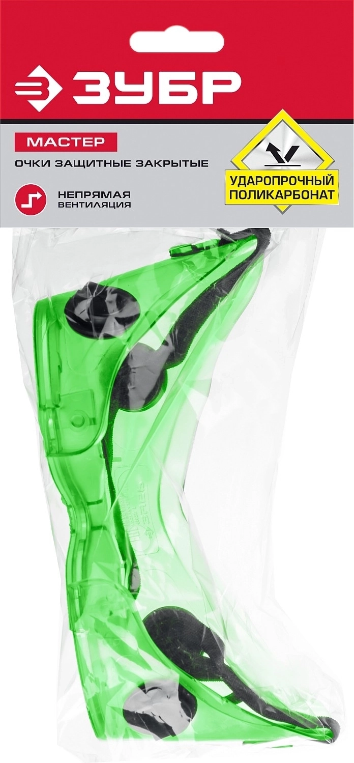 Защитные очки ЗУБР предназначены для защиты органов зрения от твердых летящих частиц и брызг не разъедающих жидкостей, газов и мелко-дисперсных аэрозолей.