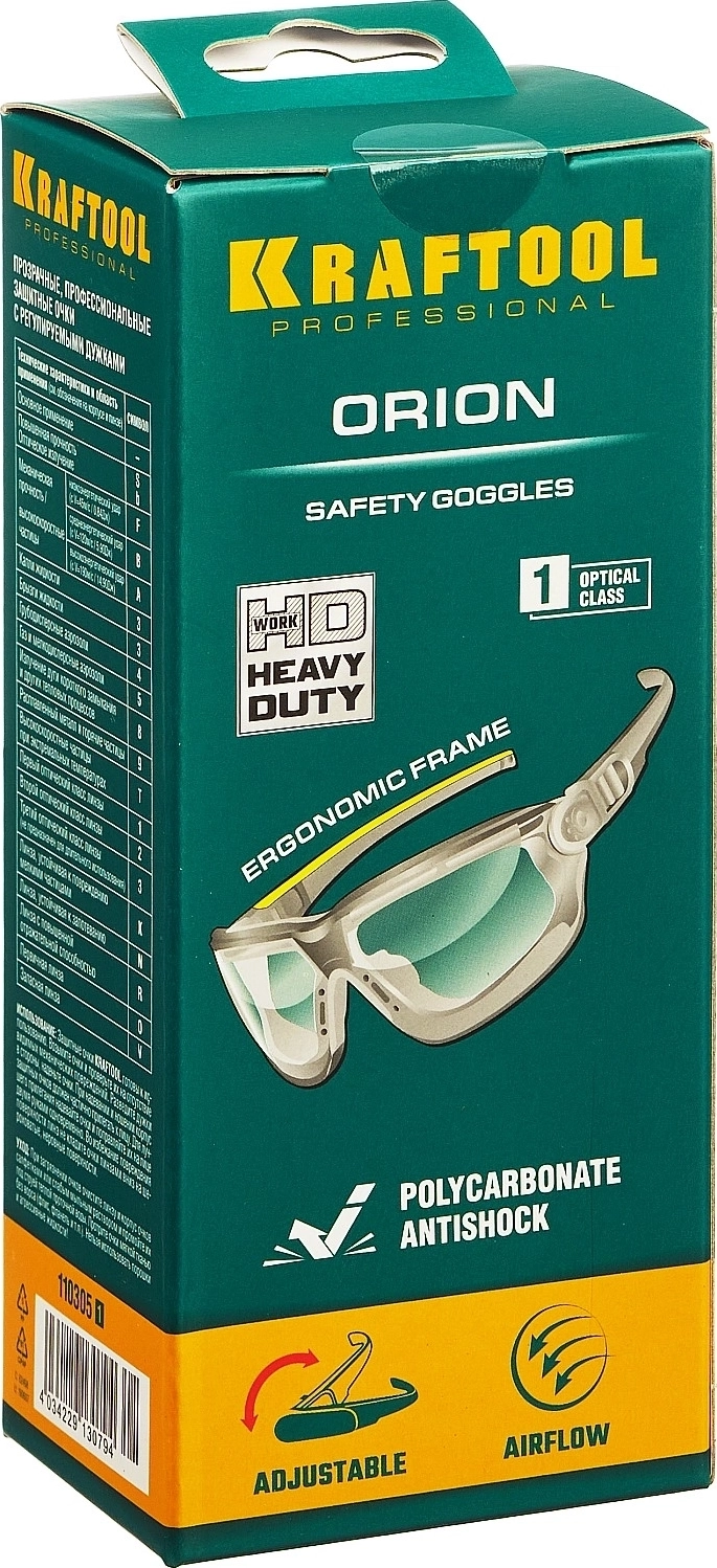 Защитные очки с непрямой вентиляцией KRAFTOOL ORION, открытого типа, прозрачные, стекло с антибликовым покрытием