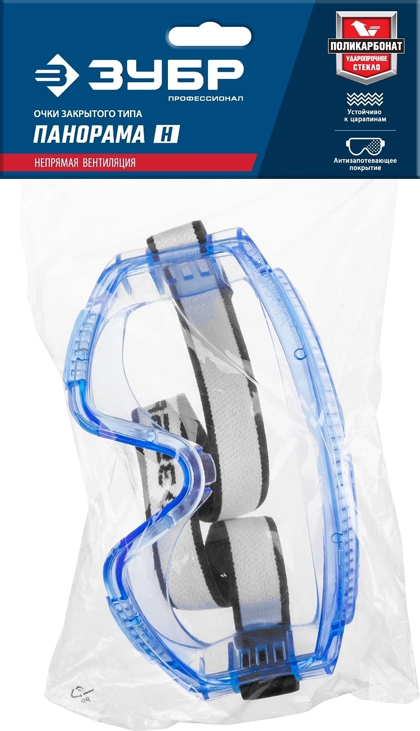 Защитные очки с непрямой вентиляцией ЗУБР ПАНОРАМА Н закрытого типа стекло из ударопрочного поликарбоната