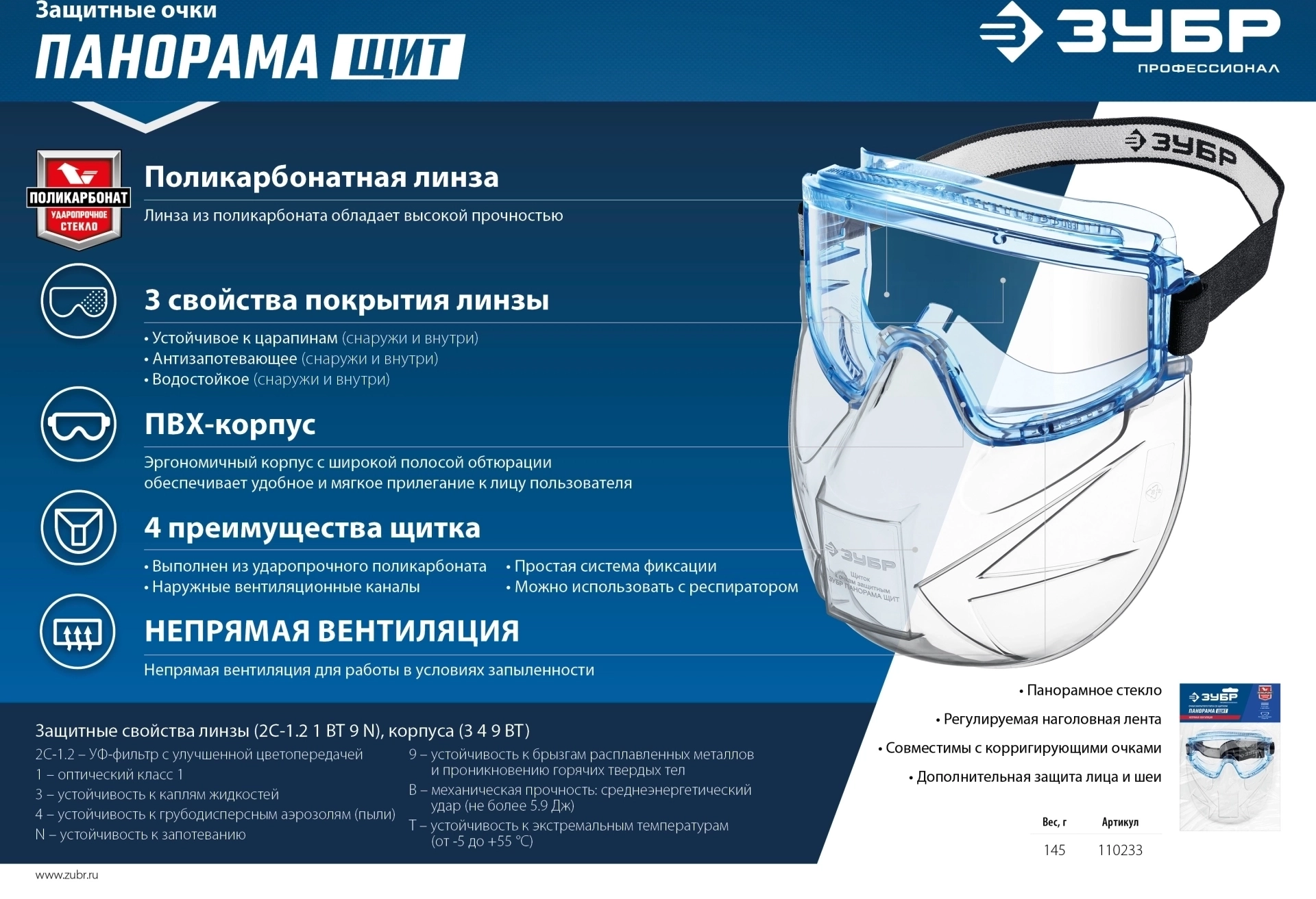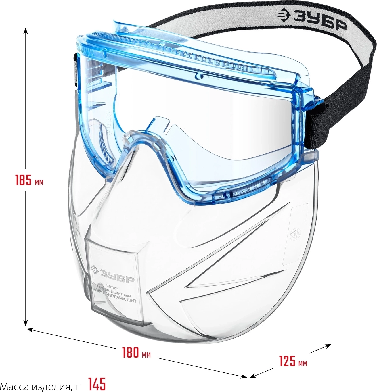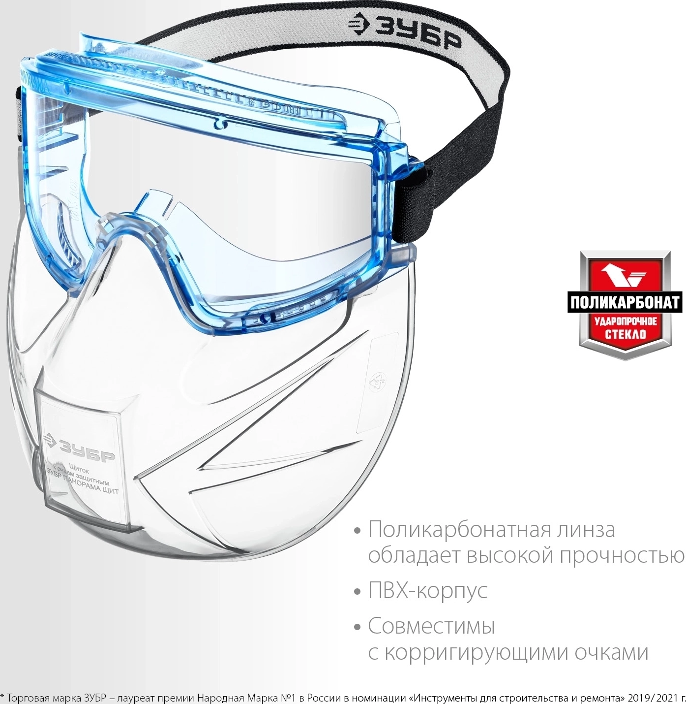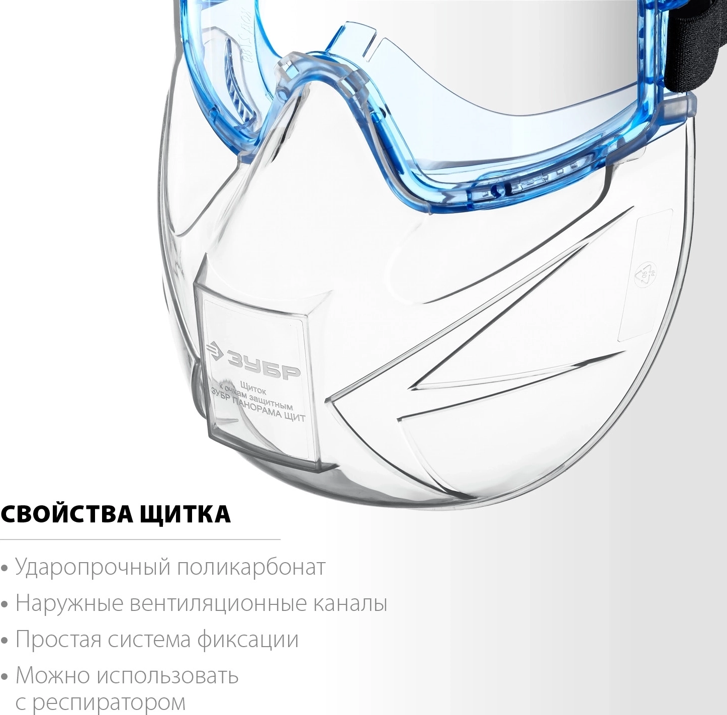 Защитные очки с непрямой вентиляцией ЗУБР ПАНОРАМА ЩИТ закрытого типа стекло из ударопрочн поликарбоната в компл со щитком