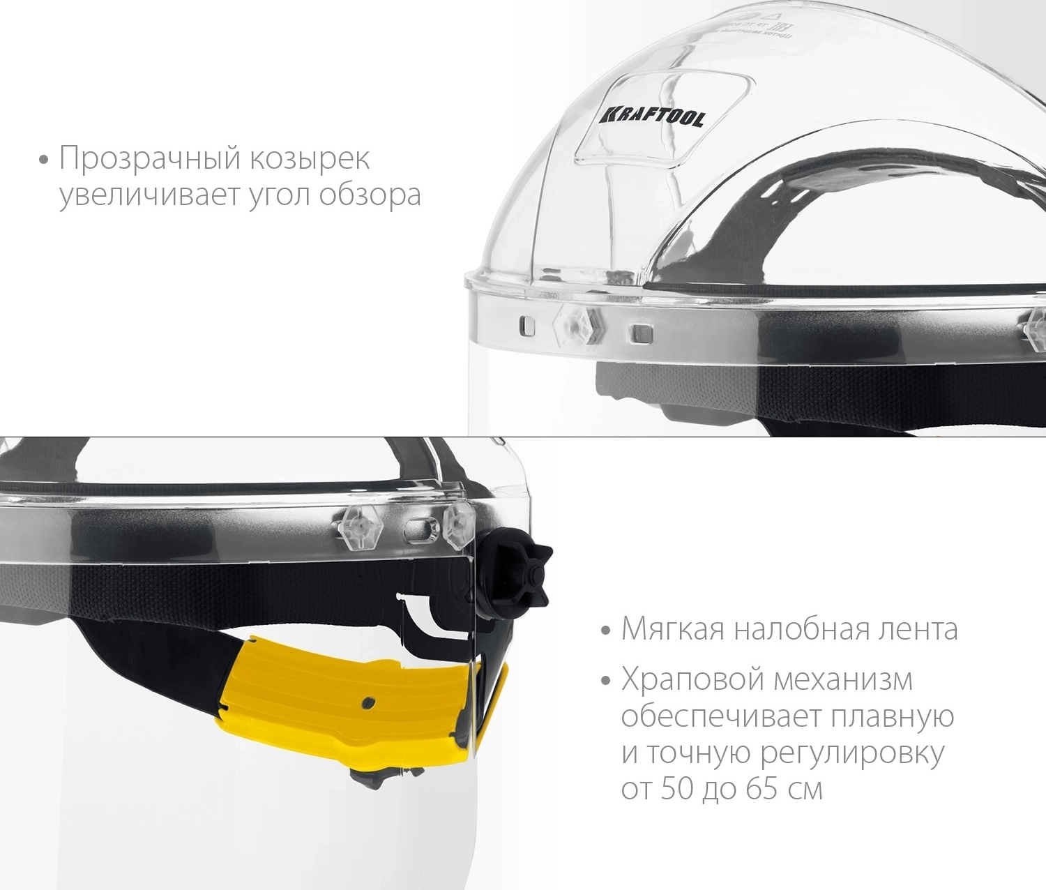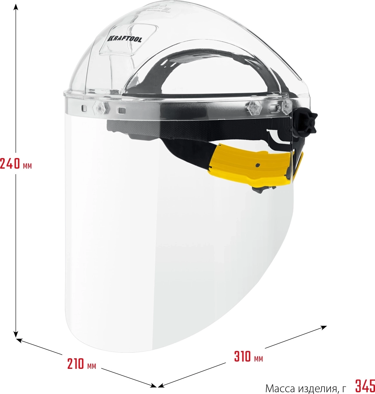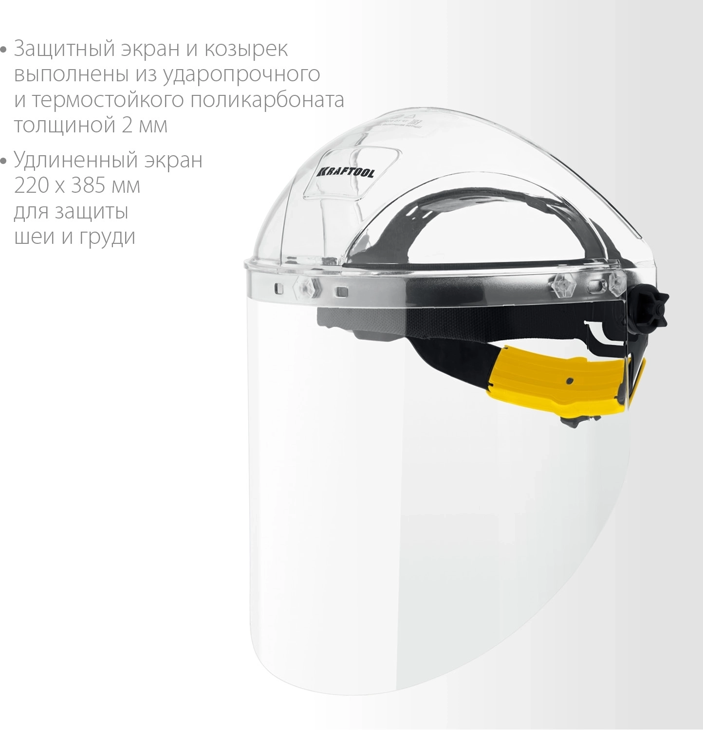 Защитный лицевой щиток KRAFTOOL SPECTRA, удлинённый экран 220 х 385 мм, поликарбонат 2 мм, храповик