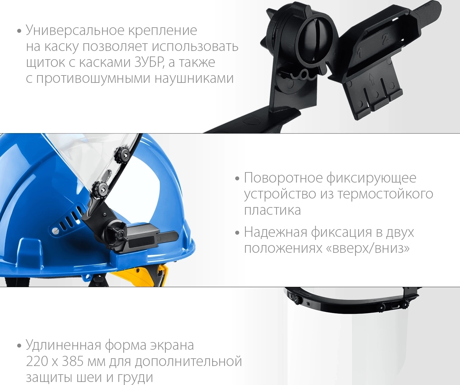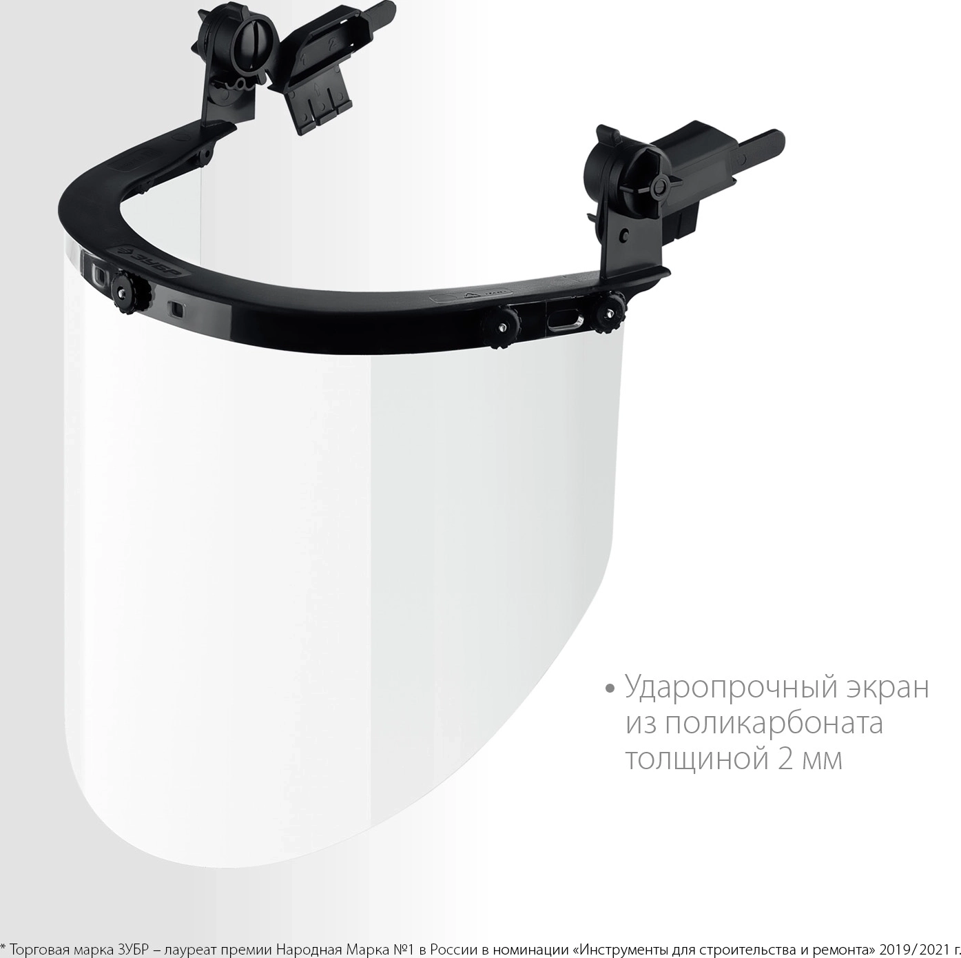 Защитный лицевой щиток для крепления на каске ЗУБР ЗАСЛОН экран 220 х 385 мм поликарбон 2 мм