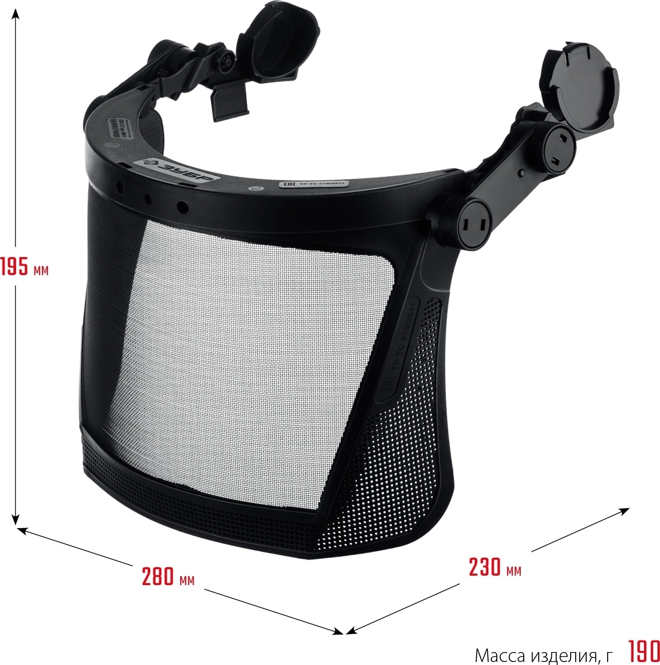 Защитный лицевой щиток для крепления на каске ЗУБР ЗАСЛОН-С 190 х 339 мм экран из мелкоячеистой сетки