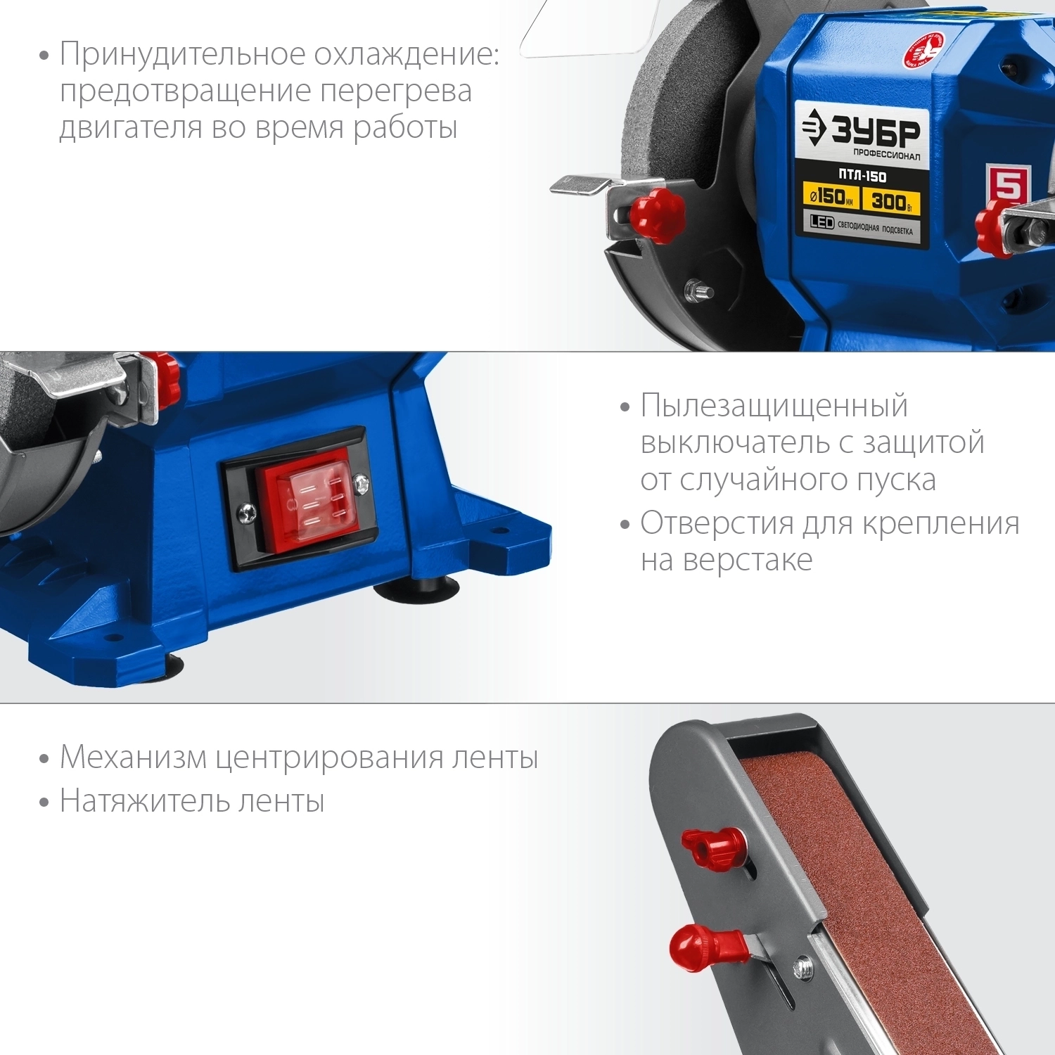 Заточной станок с шлифовальной лентой ЗУБР d 150 50x686 мм лента 300 Вт