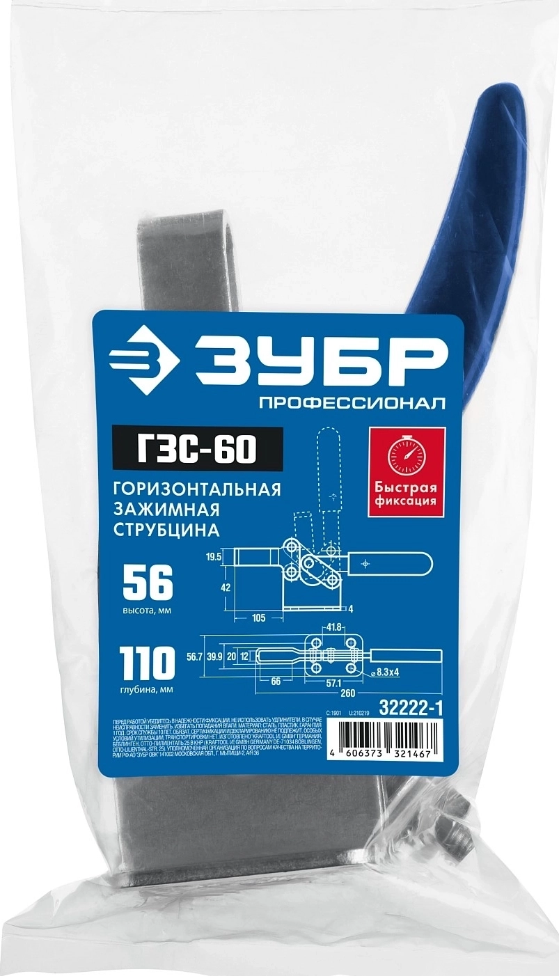 Зажимная струбцина ЗУБР ГЗС-60 56 х 110 мм