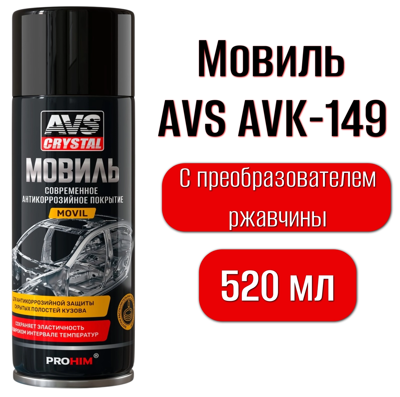Мовиль "консервирующий состав" с преобразователем ржавчины (аэрозоль) 520 мл. AVS AVK-149 арт. 77099