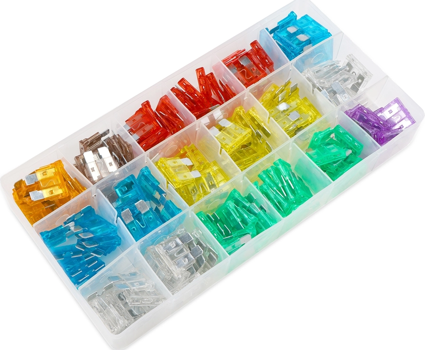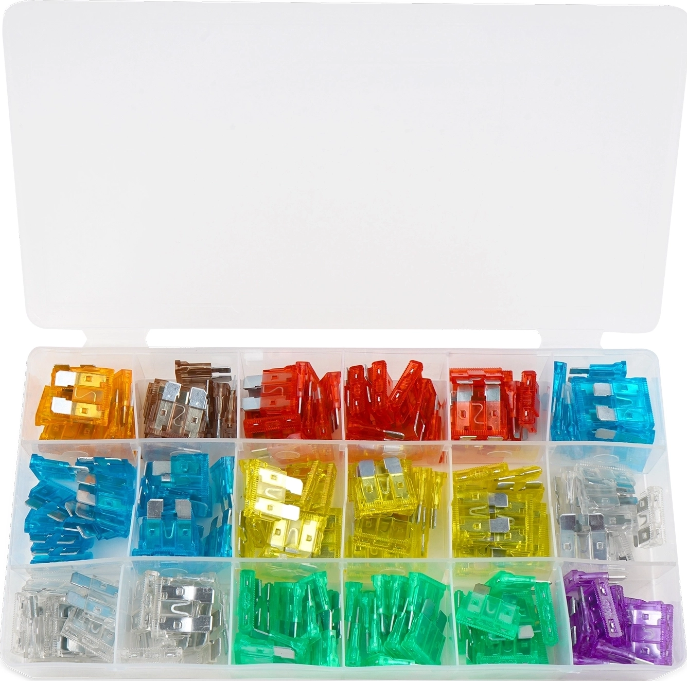 Корпус предохранителя выполнен из прозрачного пластика, а элемент - из цинкового сплава. Набор автомобильных предохранителей "Стандарт" применяется на отечественных автомобилях. В комплект входит 180 предохранителей разного номинала.