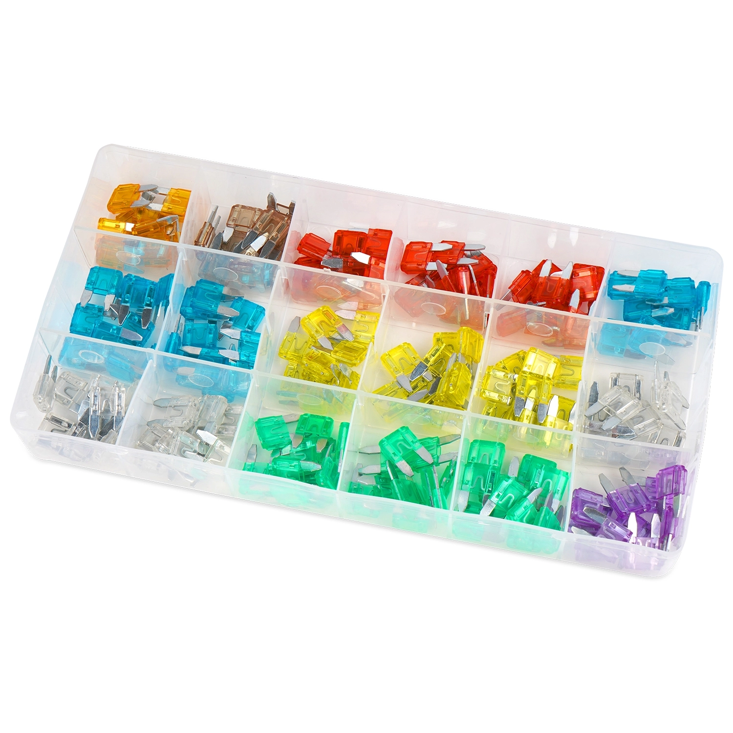 Иногда невозможно быстро определить, что предохранитель перегорел. Корпус предохранителя выполнен из прозрачного пластика, а элемент - из цинкового сплава. Набор автомобильных предохранителей "Мини" применяется на иномарках. В комплект входит 180 предохранителей разного номинала.