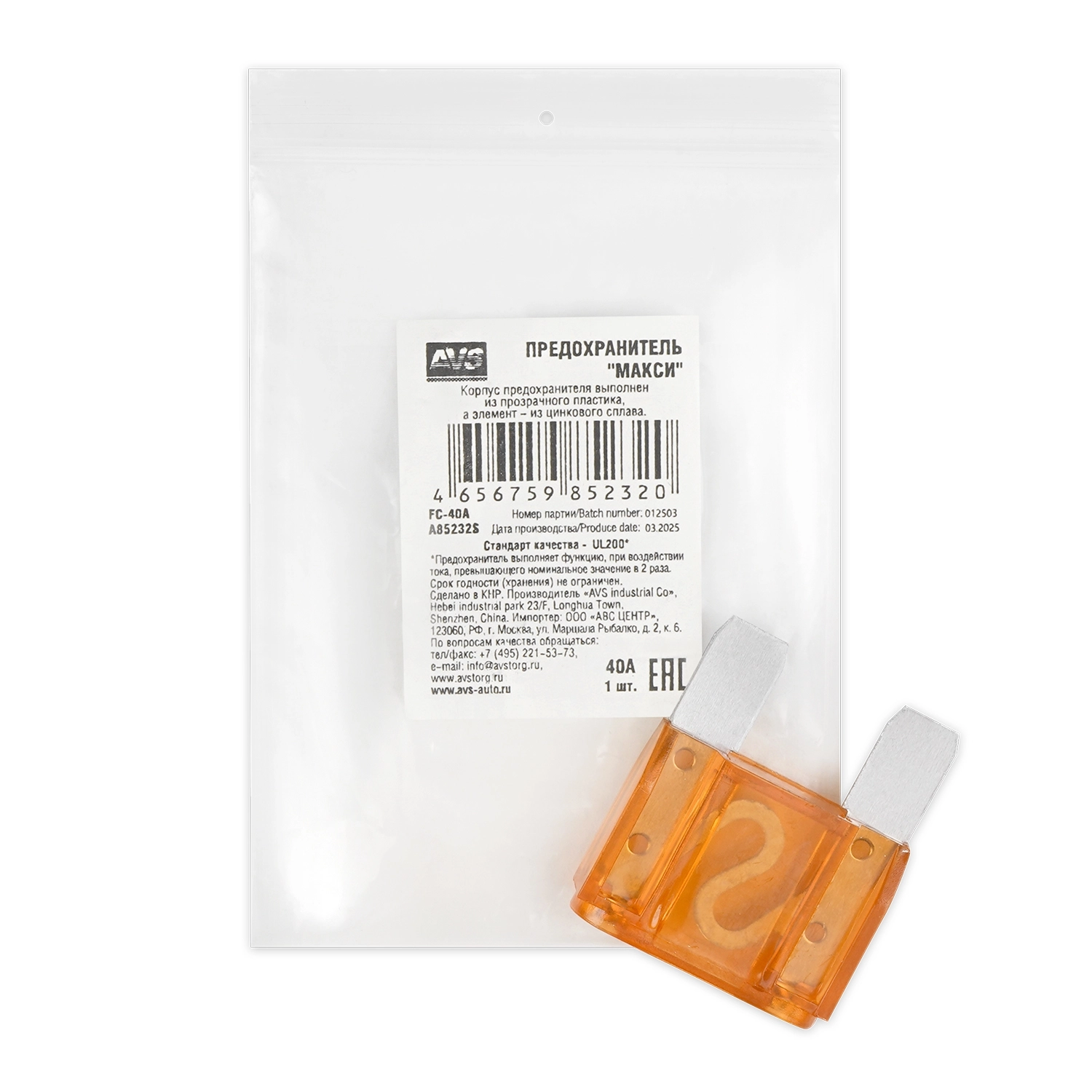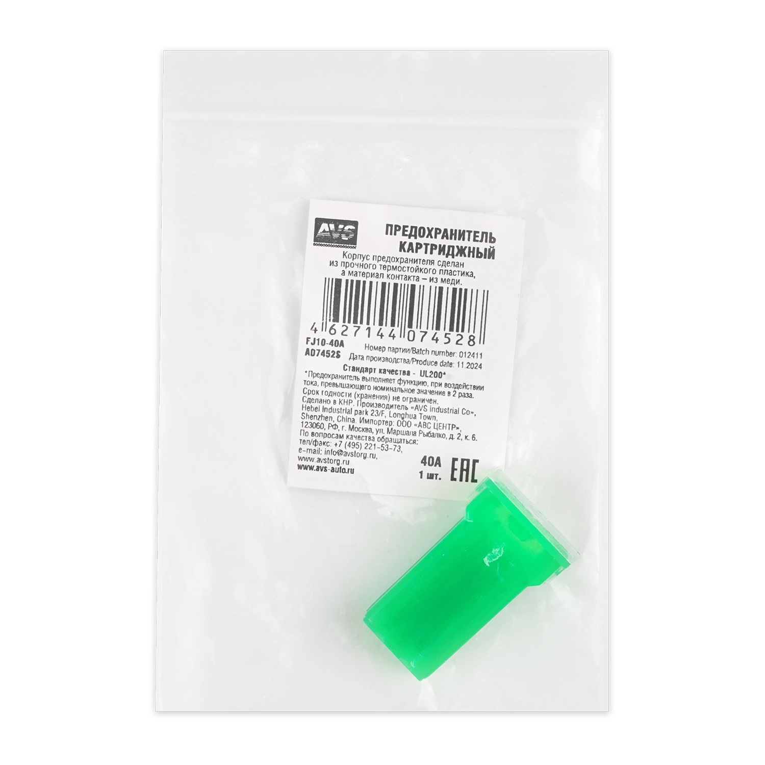 Предохранитель картриджный AVS FJ10-40A в пакете