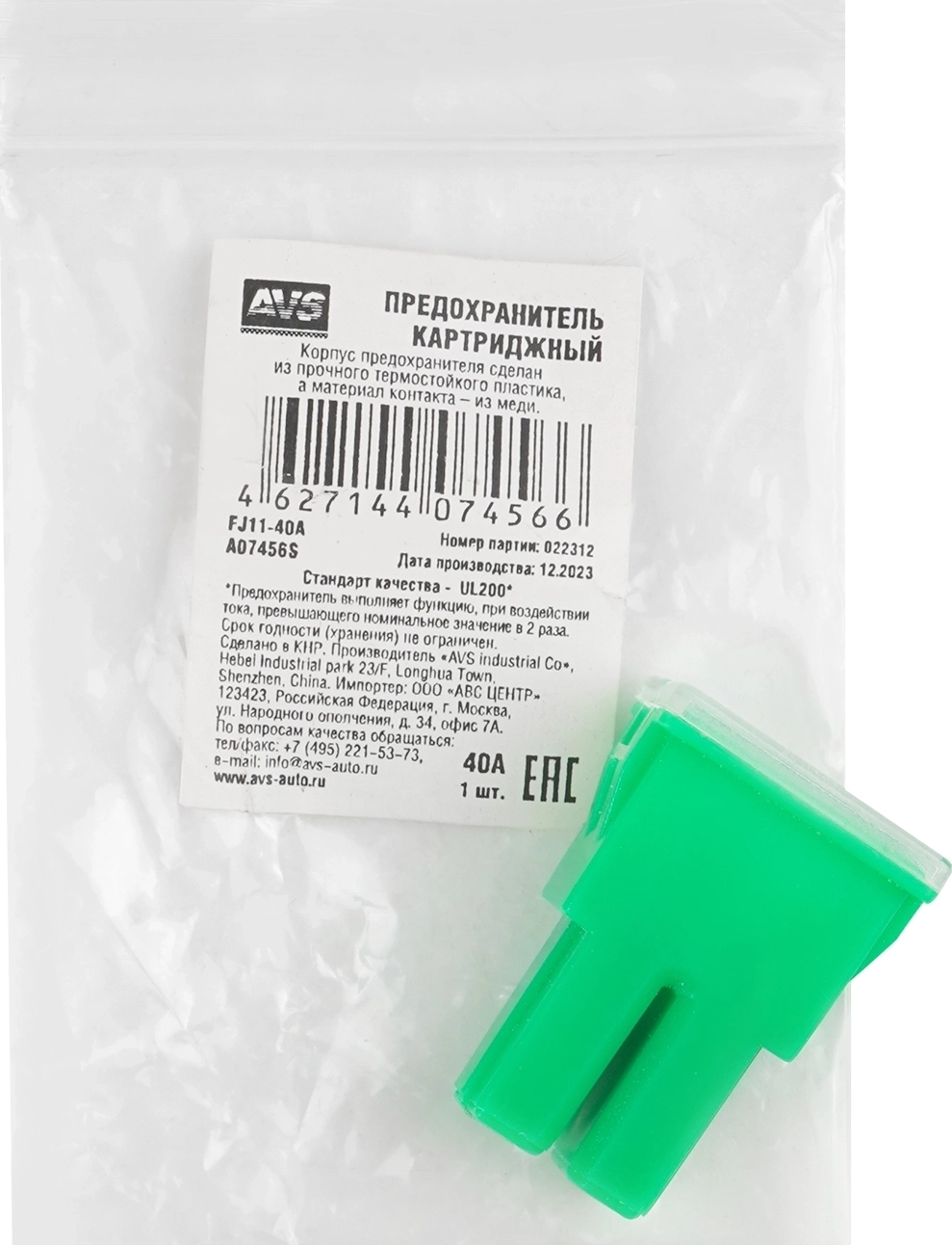 Предохранитель картриджный AVS FJ11-40A в пакете