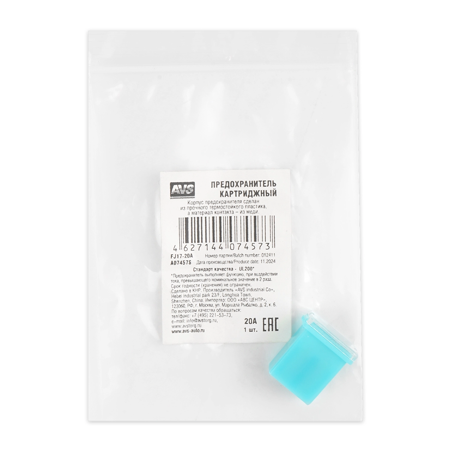 Предохранитель картриджный AVS FJ17-20A в пакете