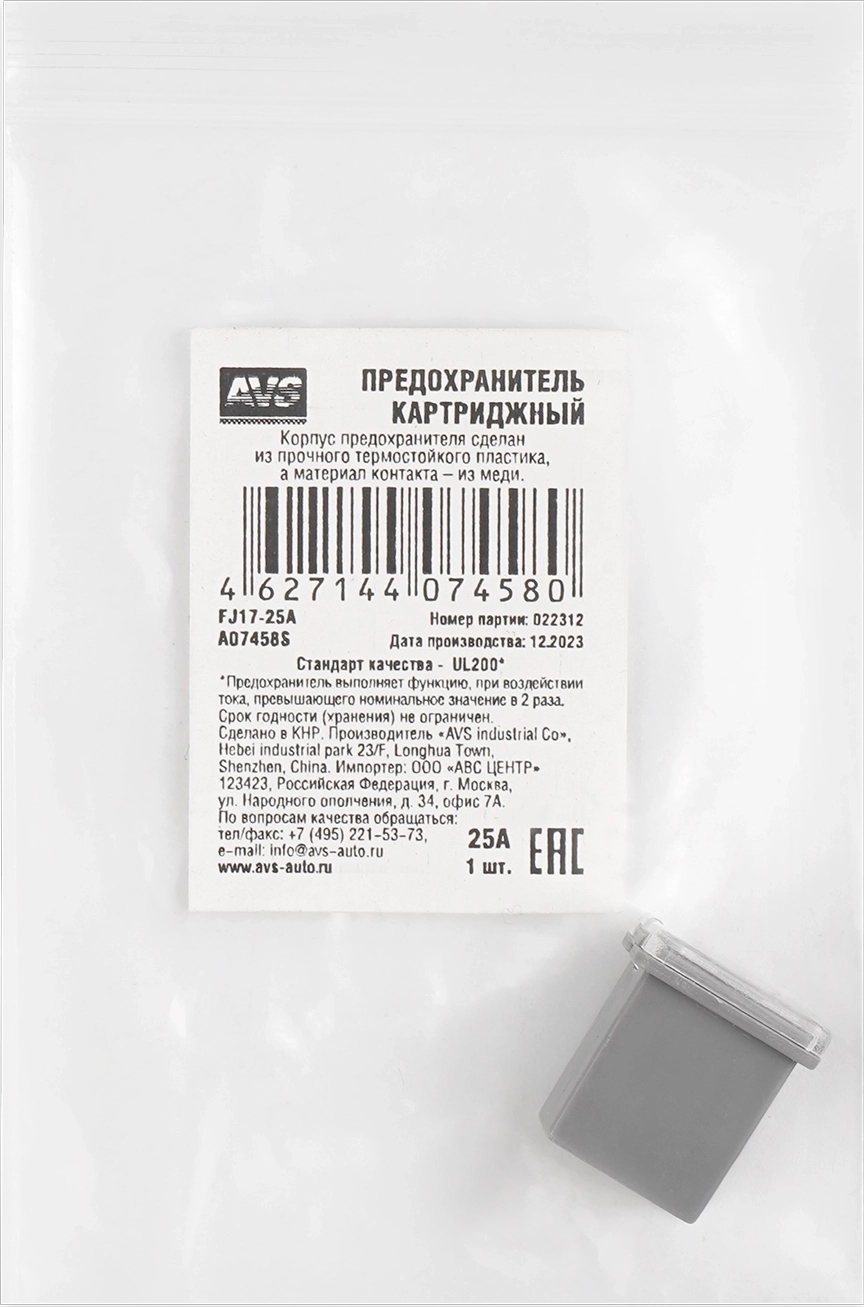 Предохранитель картриджный AVS FJ17-25A в пакете