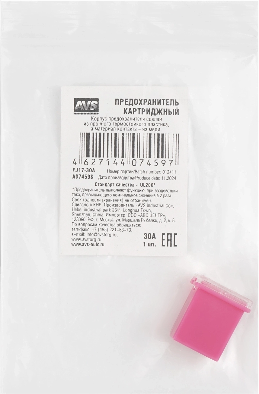 Предохранитель картриджный AVS FJ17-30A в пакете