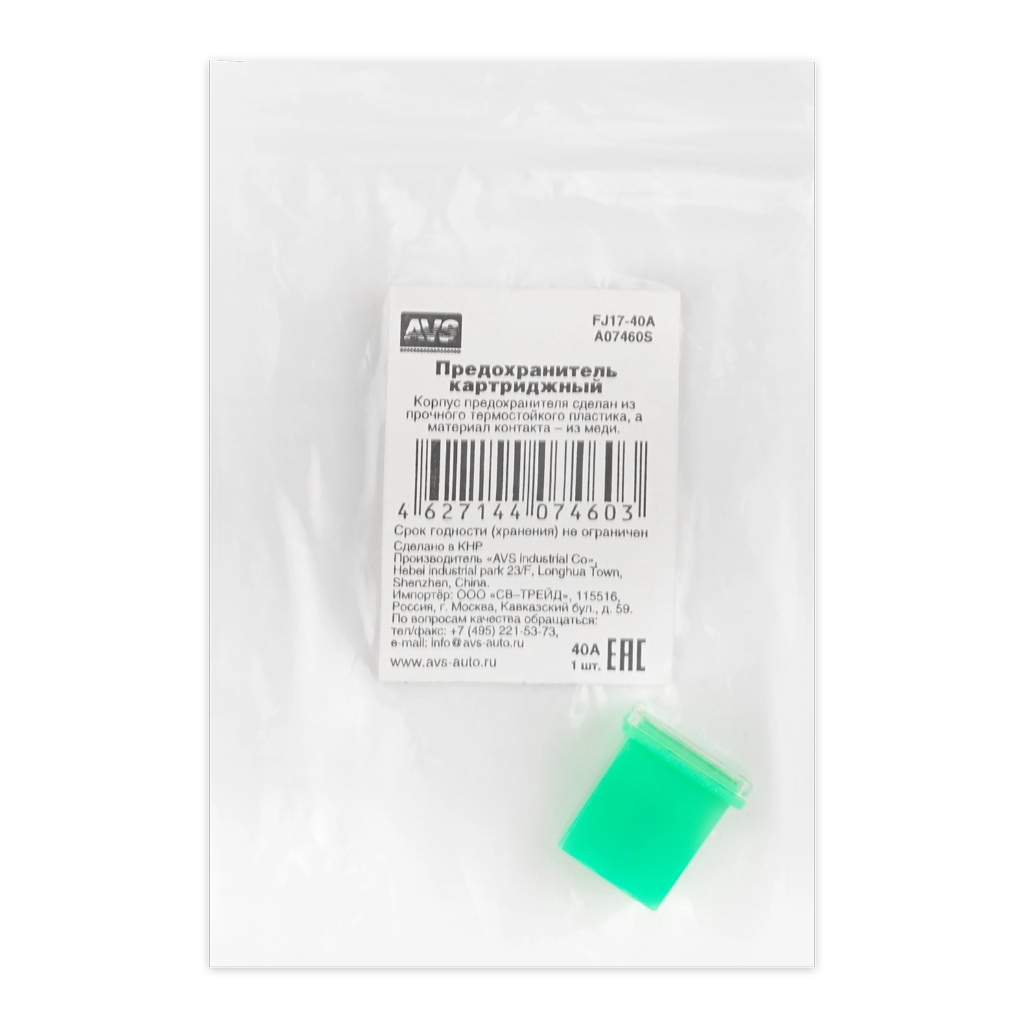 Предохранитель картриджный AVS FJ17-40A в пакете