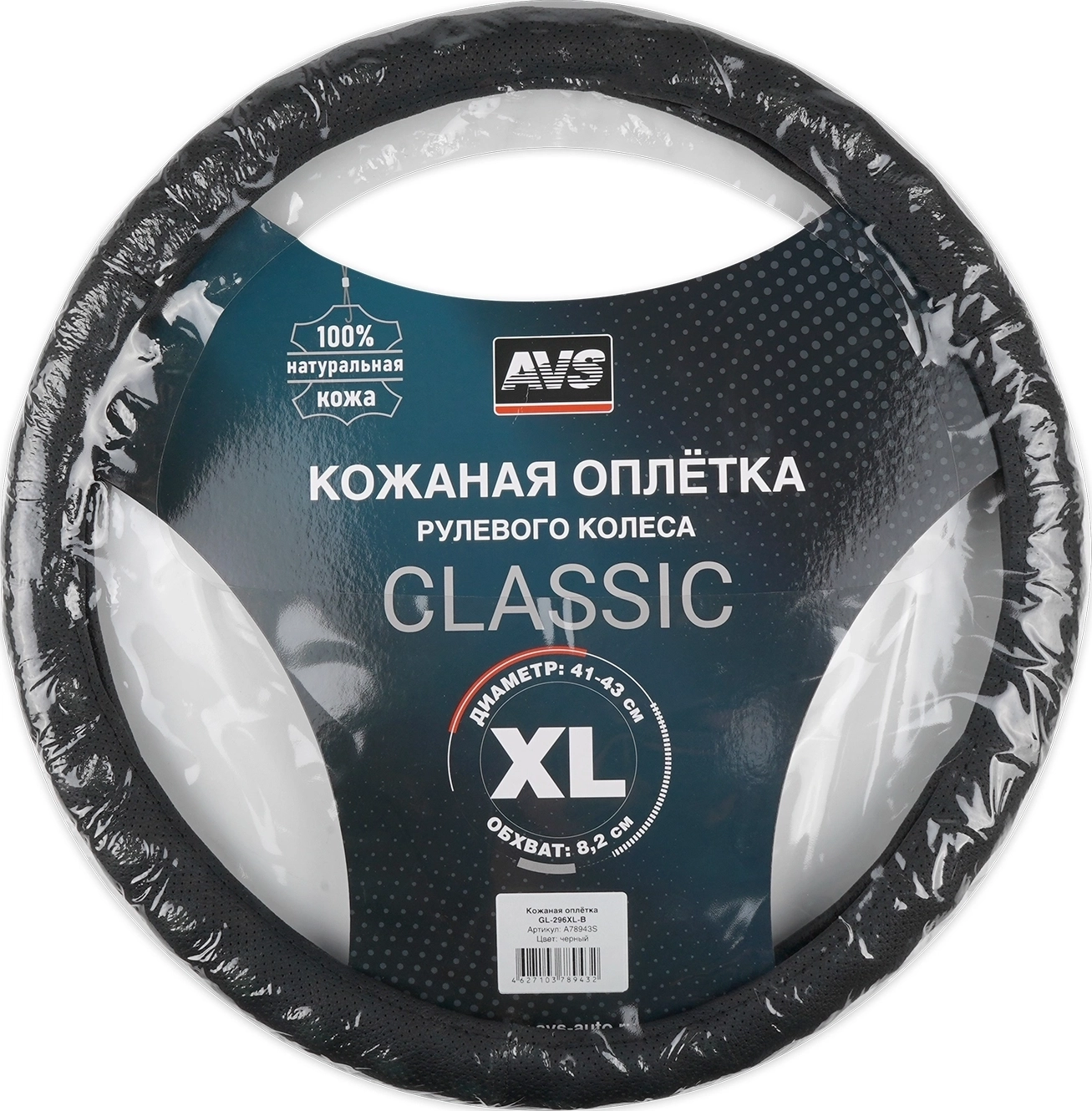 Оплетка на руль AVS GL-296XL-B - материал натуральная кожа, размер XL, цвет черный