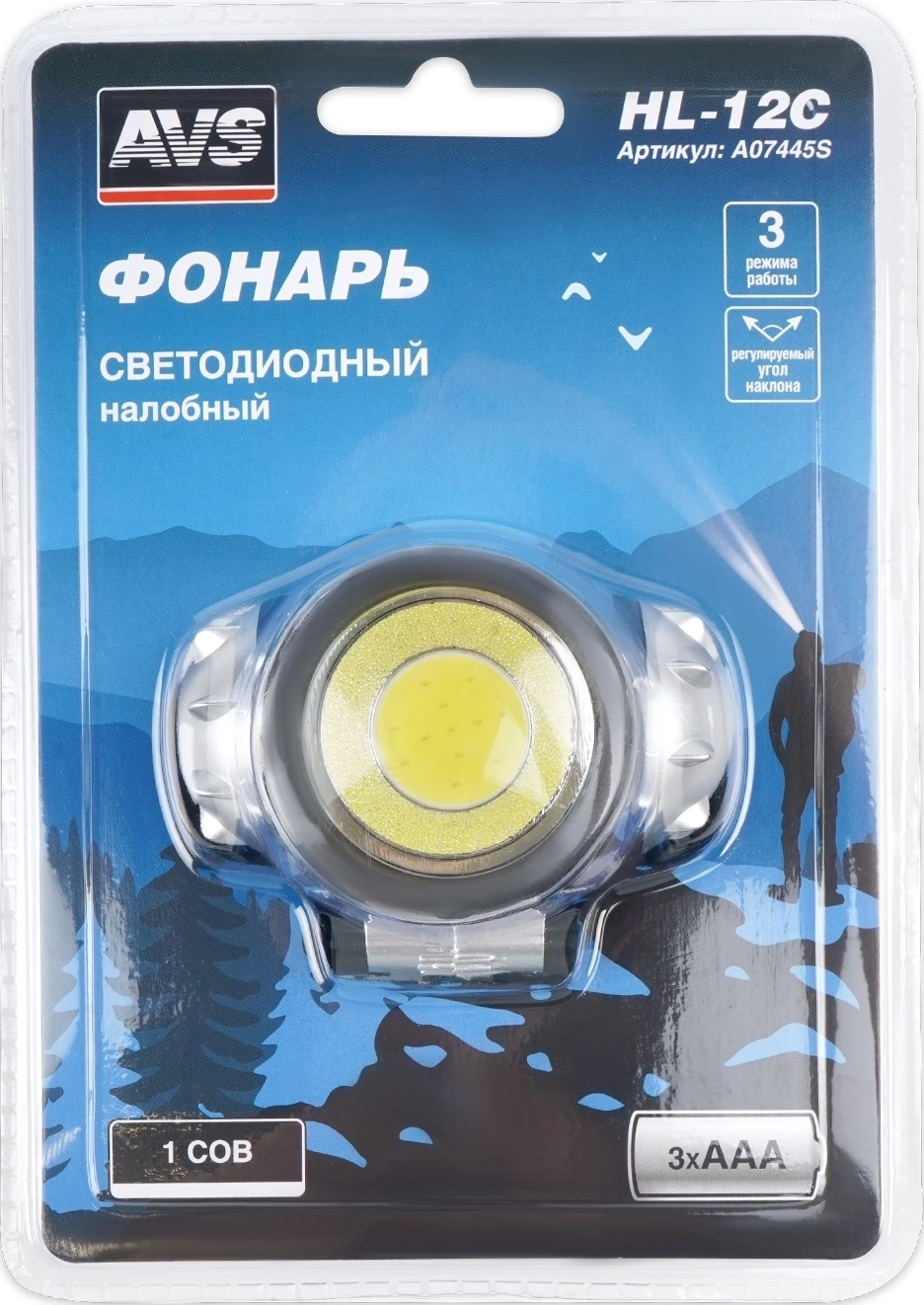 Светодиодный фонарь AVS HL-12C налобный - питание от батареек ААА, продолжительность работы до 9 часов