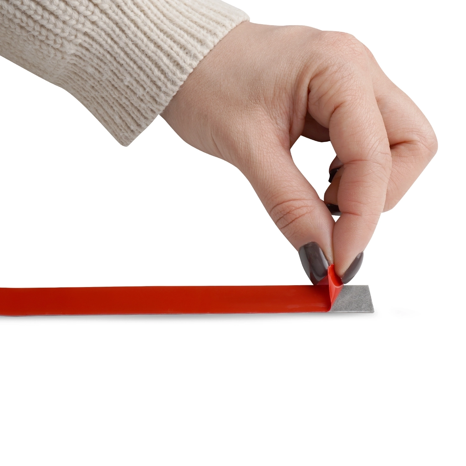 - Наклейте ленту на поверхность одной из склеиваемых деталей (оптимальная температура для наклеивания ленты: от +20°С до +40°С, работать при температуре ниже +10°С не рекомендуется).