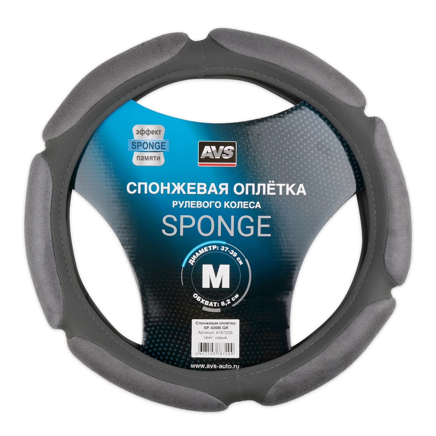 Оплетка на руль AVS SP-426M-GR - материал экокожа и алькантара, размер М, цвет серый