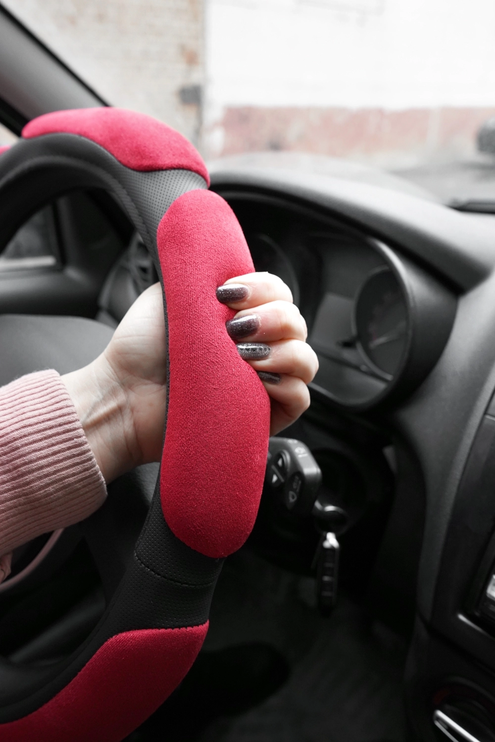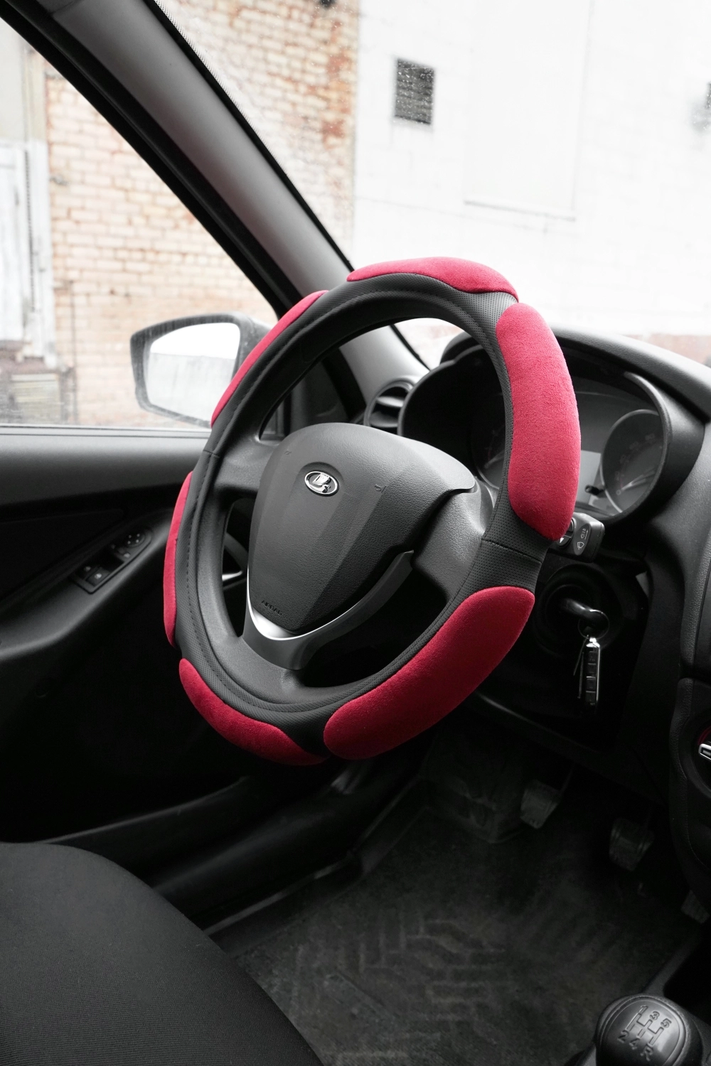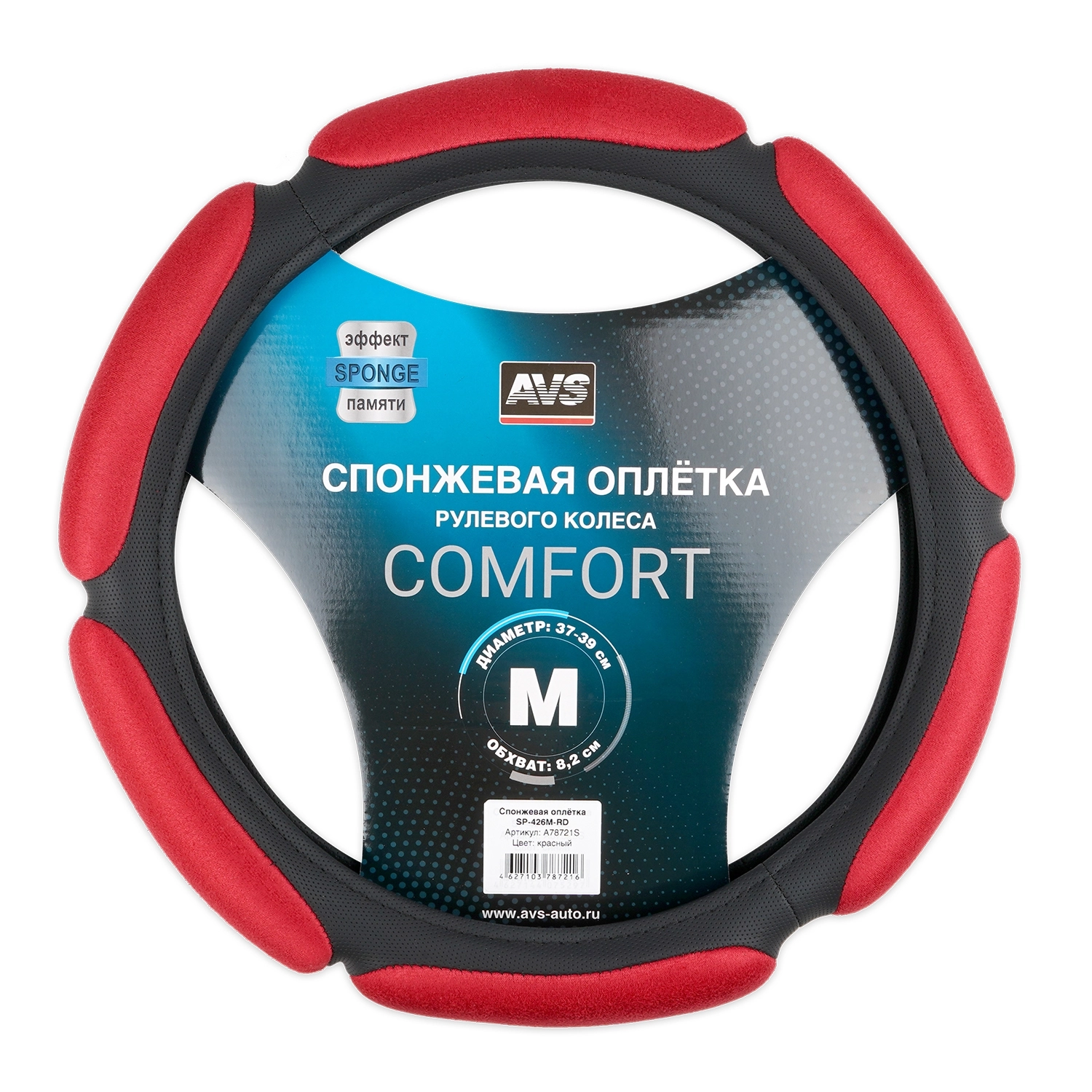 Оплетка на руль AVS SP-426M-RD - материал экокожа и алькантара, размер М, цвет черно-красный