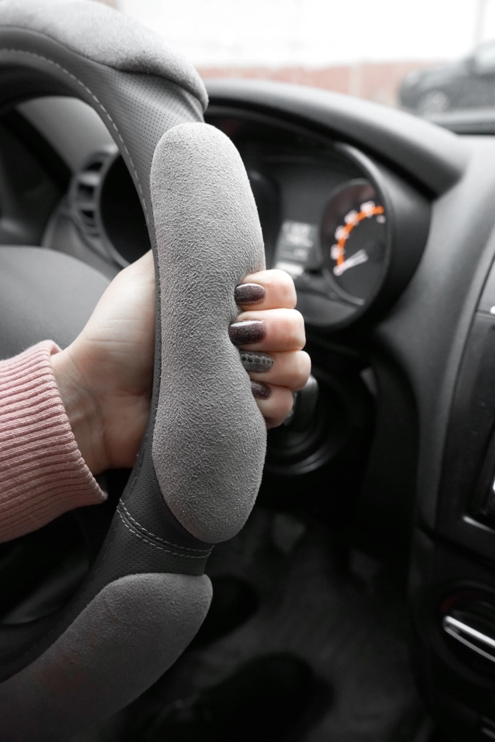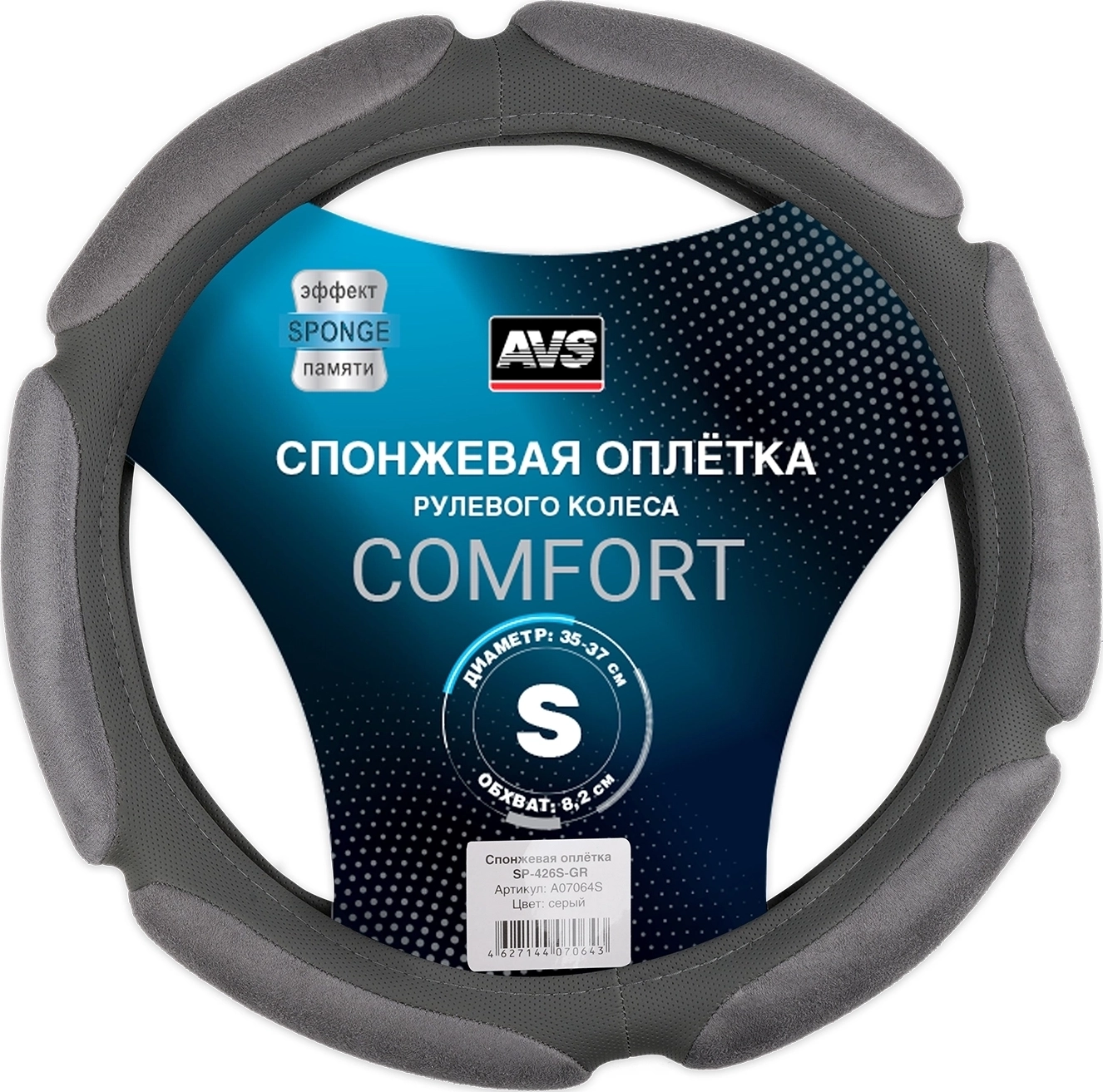 Оплетка на руль AVS SP-426S-GR - материал экокожа и алькантара, размер S, цвет серый