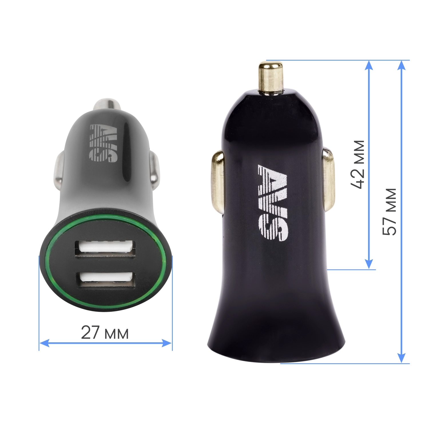 Автомобильное зарядное устройство AVS UC-522 Black Edition - 2 порта USB, выходной ток 2.4 А, цвет черный, выходное напряжение 5 В, напряжение питания 12-24В