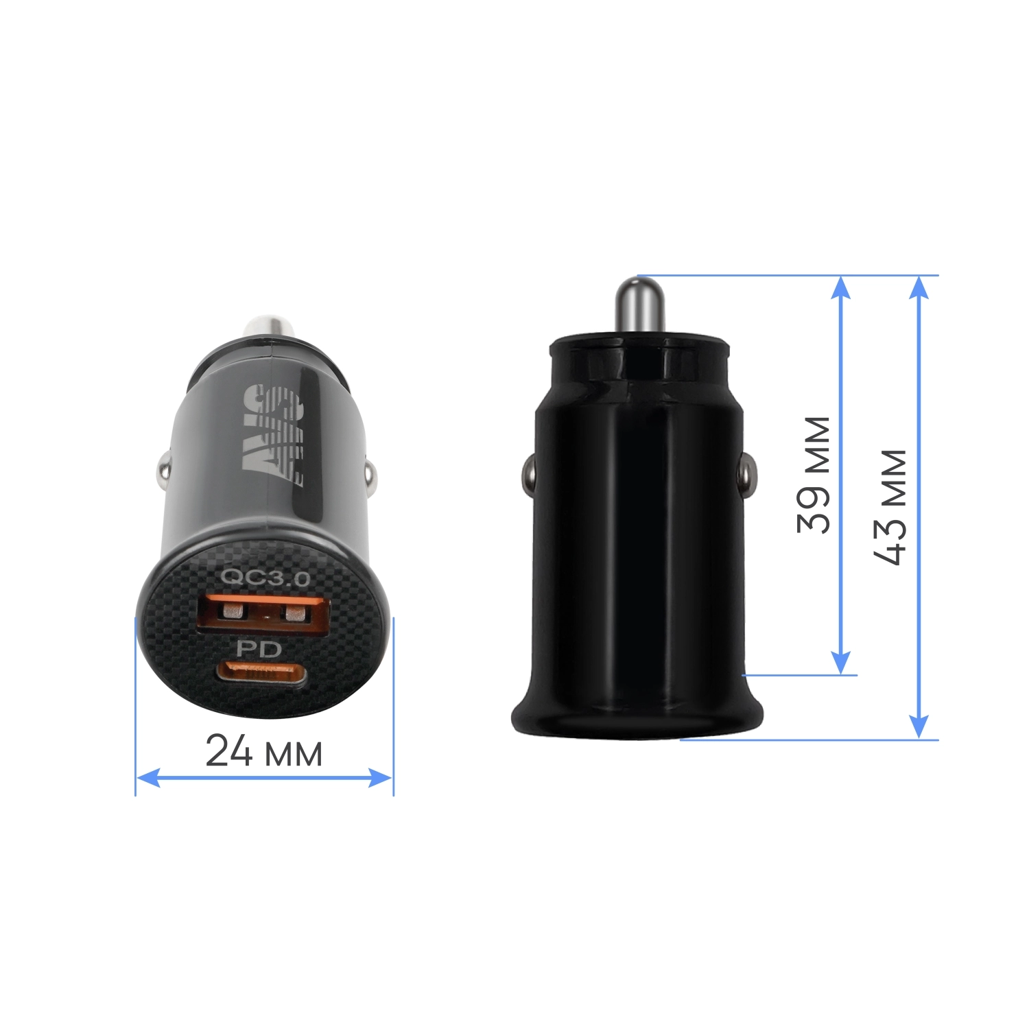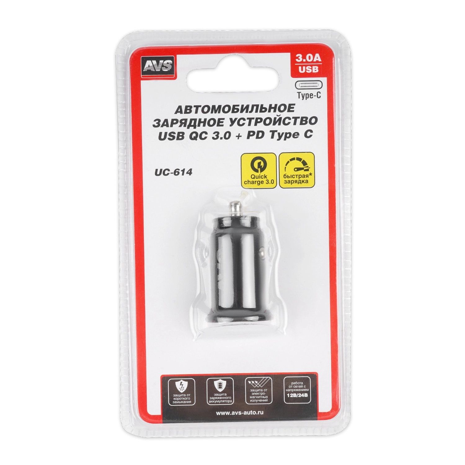 Автомобильное зарядное устройство AVS UT-614 - USB QC 3.0+PD Type C, напряжение питания 12В/24В
