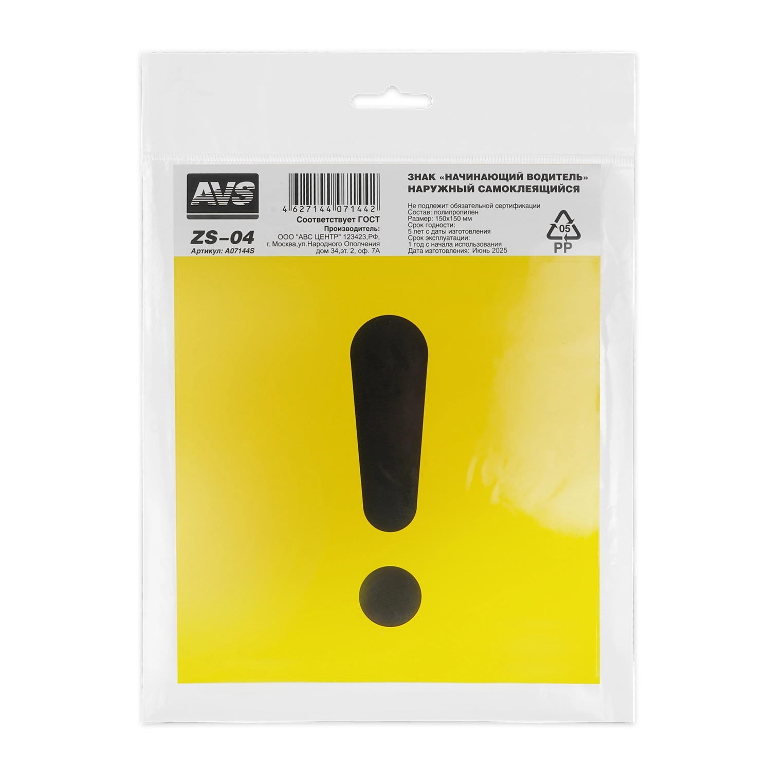 Знак Начинающий водитель AVS ZS-04 (150x150) - наружный, самоклеящийся, ГОСТ