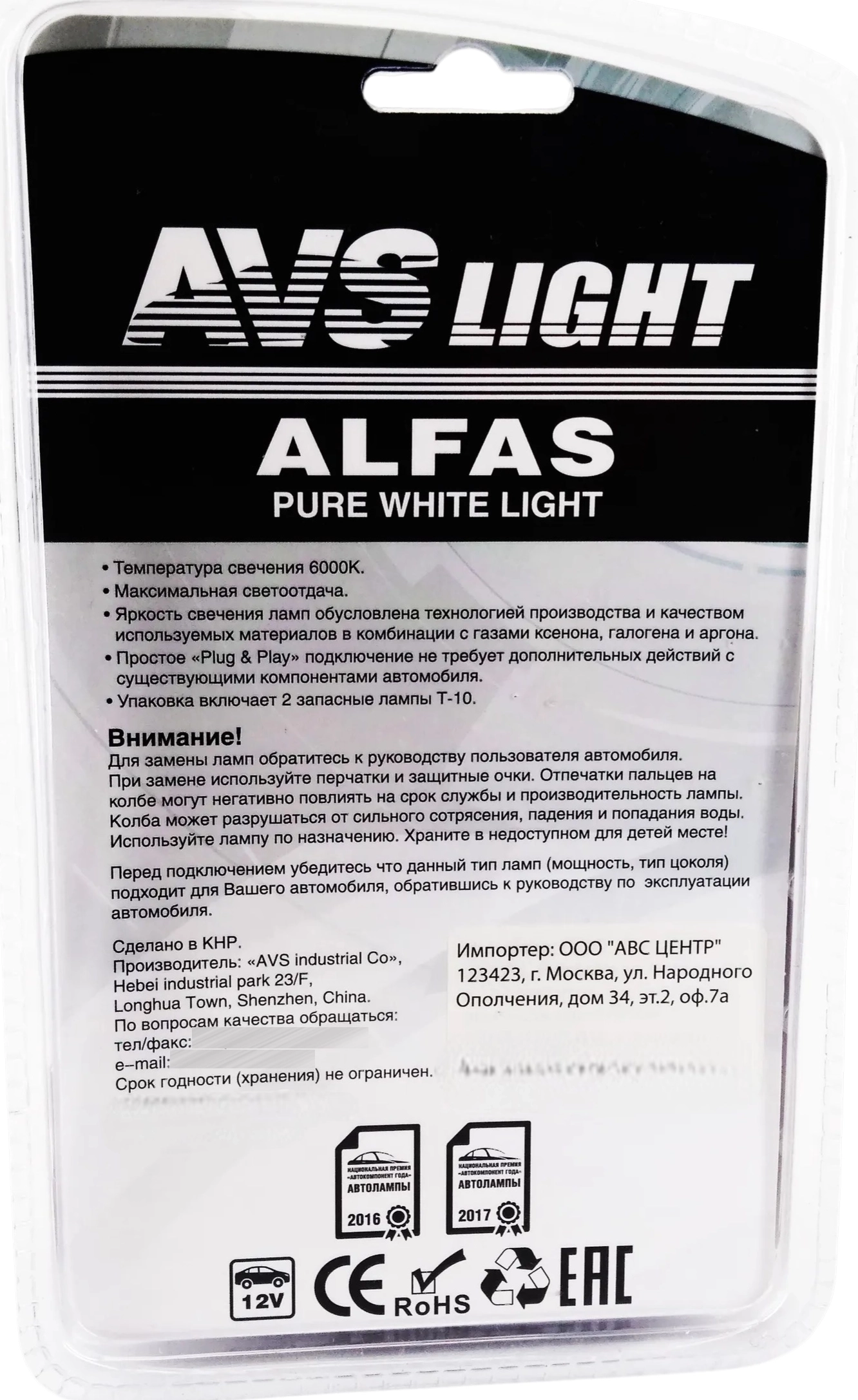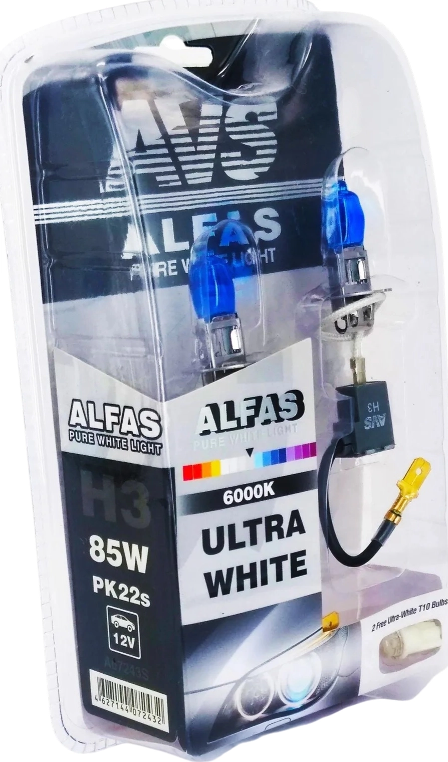 Галогенные лампы AVS ALFAS Pure-White 6000К H3 12V 85W - яркий белый цвет, кварцевое стекло, керамический патрон