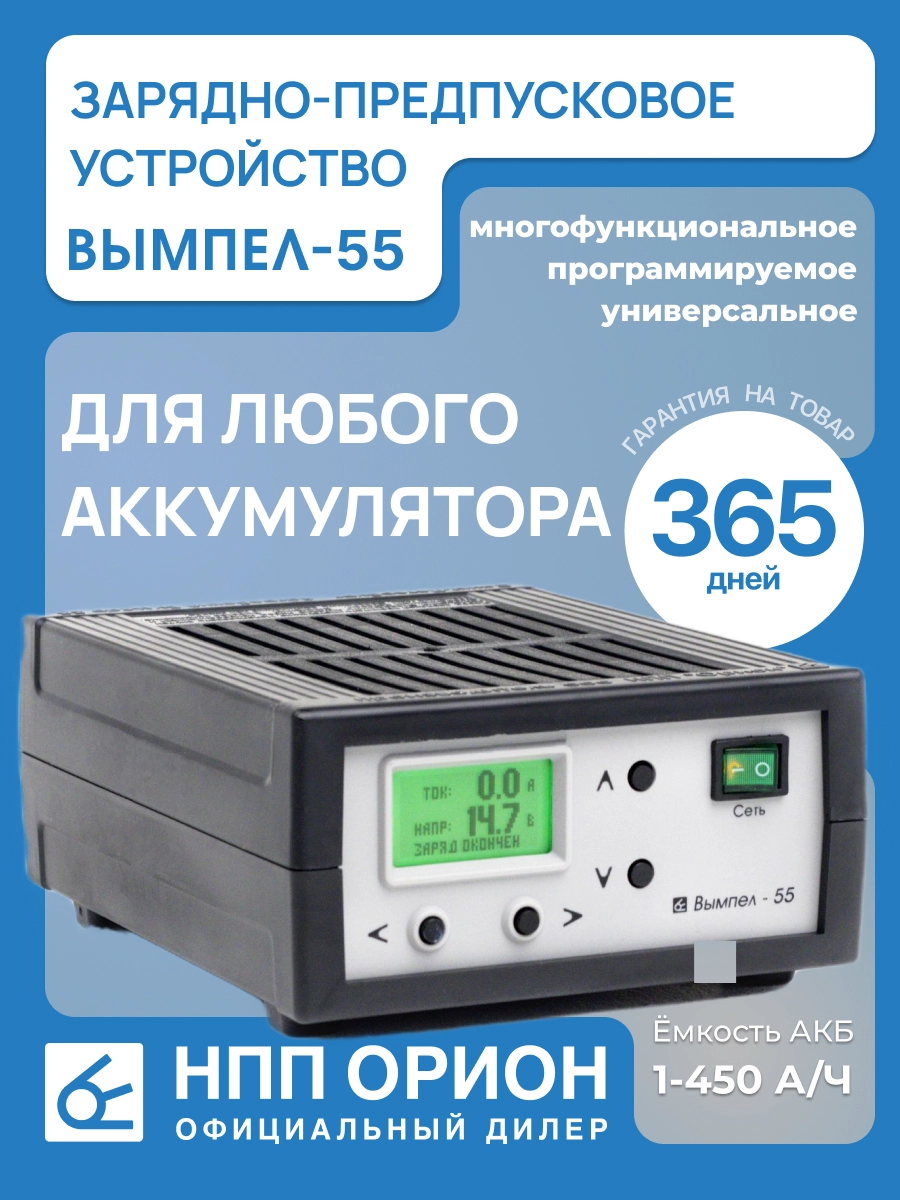 - Емкость заряжаемого аккумулятора: 5 – 50 Ач