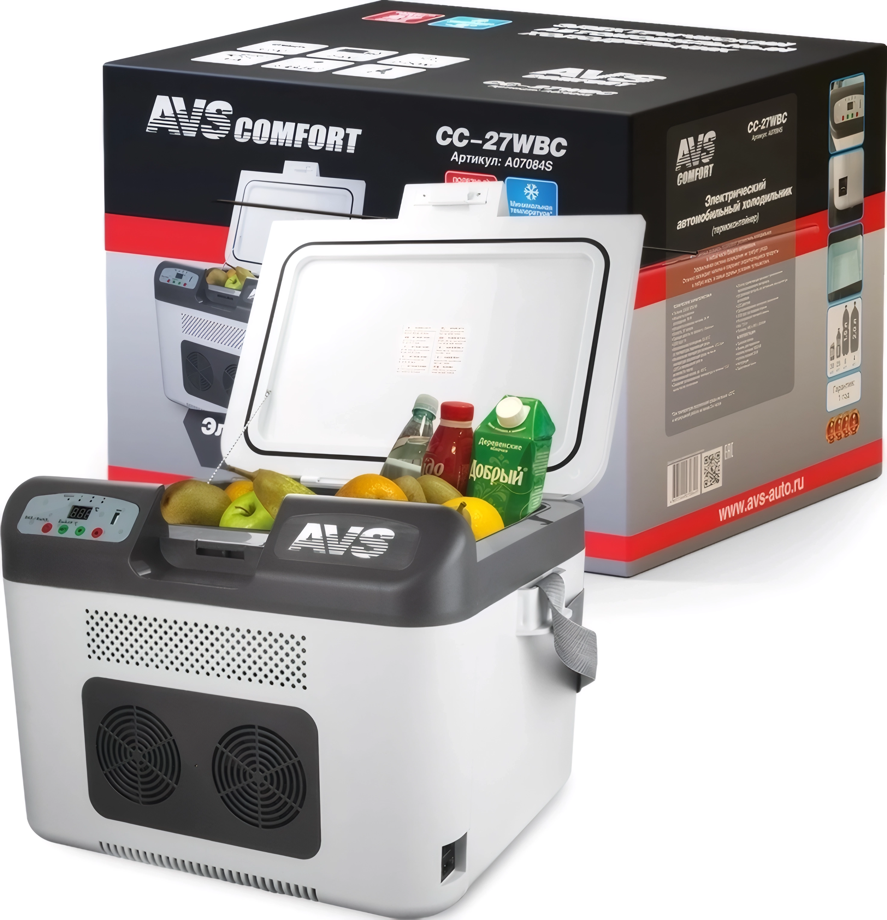 Встроенная система мониторинга состояния автомобильного аккумулятора также обеспечивает наиболее эффективную работу устройства. Нельзя не обратить внимание на крышку холодильника, которая сделана из термоизоляционных и экологически чистых материалов и очень плотно прилегает к основному корпусу. Общий объем помещающихся в него продуктов составляет 27 литра. Транспортировать AVS CC-27WBC можно как в багажнике, так и в салоне автомобиля на сидениях.